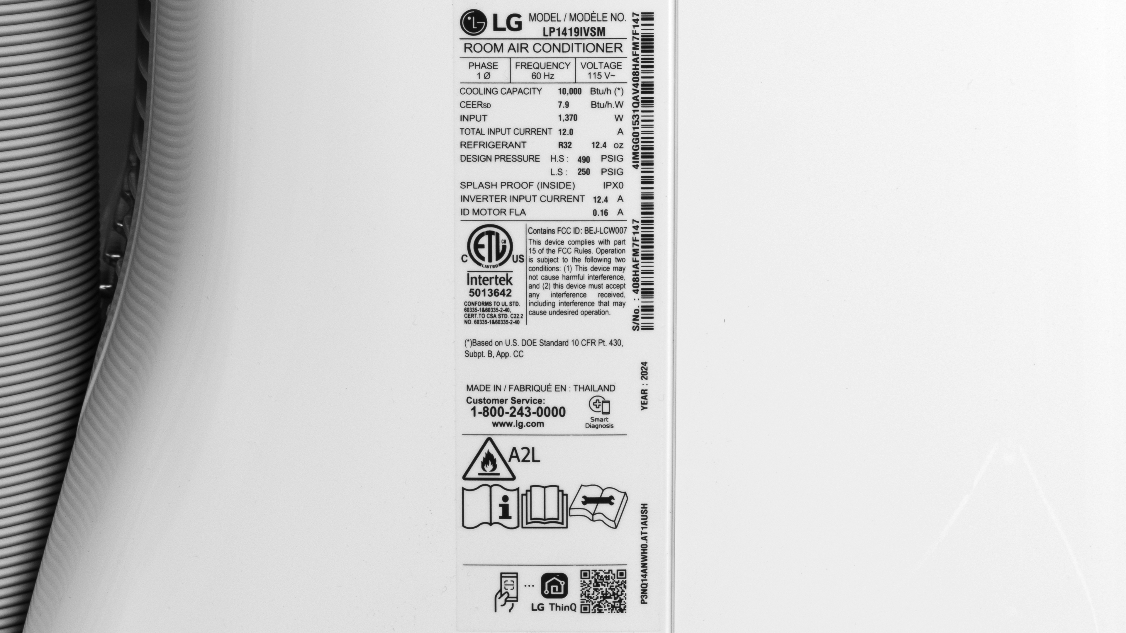 The LG DUAL Inverter LP1419IVSM's overall efficiency is poor. It doesn't have a dedicated intake hose, and instead draws in air from the room it's cooling to chill its running compressor. This generates negative air pressure and encourages warm outside air to be sucked into the room it's cooling, forcing it to work hard during both cooling and maintenance cycles.