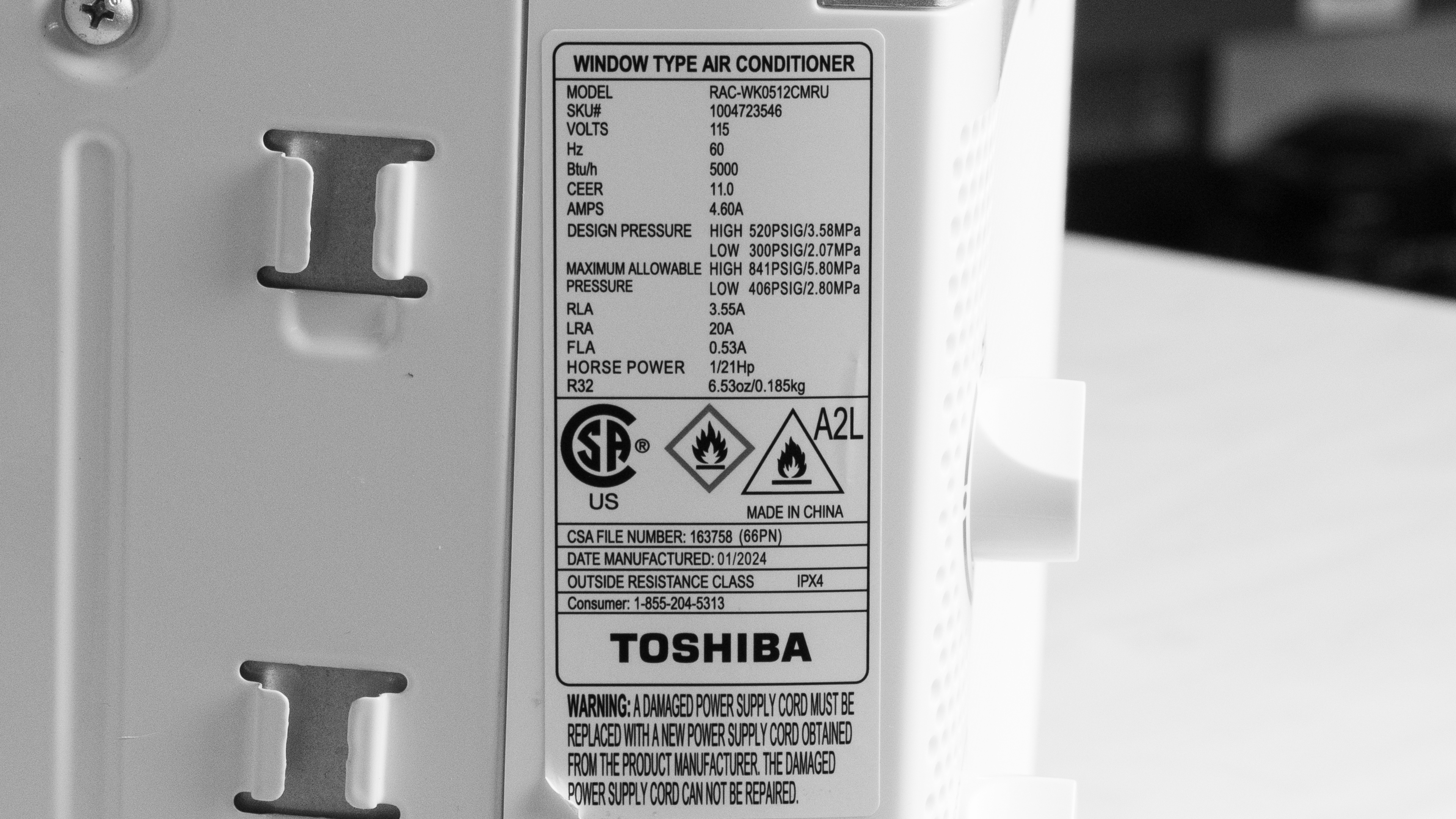 The Toshiba RAC-WK0512CMRU is a cheap, simple window-mounted A/C designed for small spaces. It's an entry-level model in Toshiba's lineup of window A/Cs, with a lower advertised capacity of 5,000 BTU/hr versus the slightly larger and pricier Toshiba RAC-WK0612CRRU. It's a bit of a standout in the 5,000 BTU class, being a little quieter and doing a better job of minimizing swings in temperature compared to the Frigidaire FFRA051WAE.