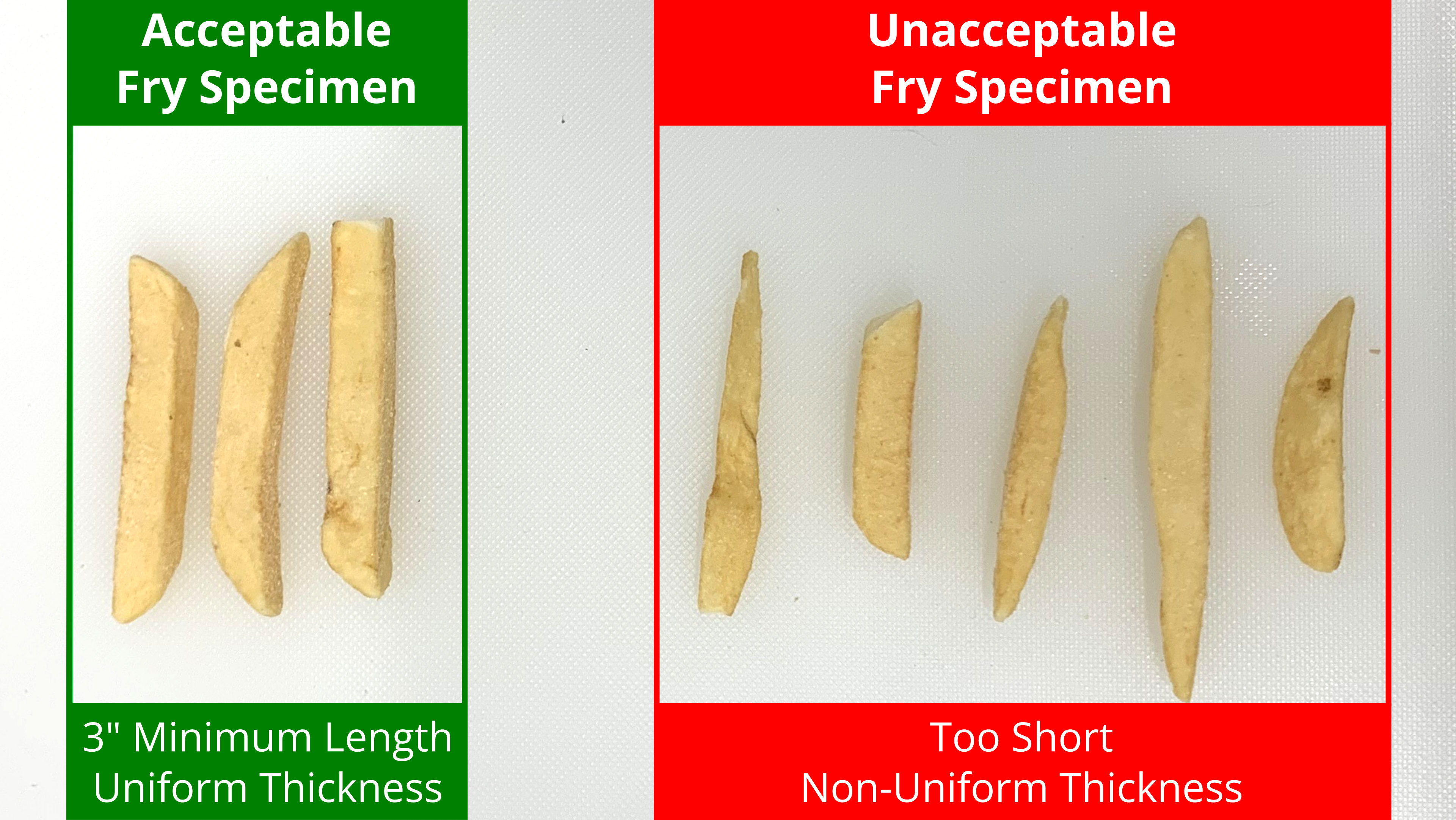 We use a 250±2 g portion of frozen French fries for every test. Because very short or skinny fries tend to overcook, our testers hand-pick each fry specimen to ensure acceptable length, uniformity, and lack of discoloration.