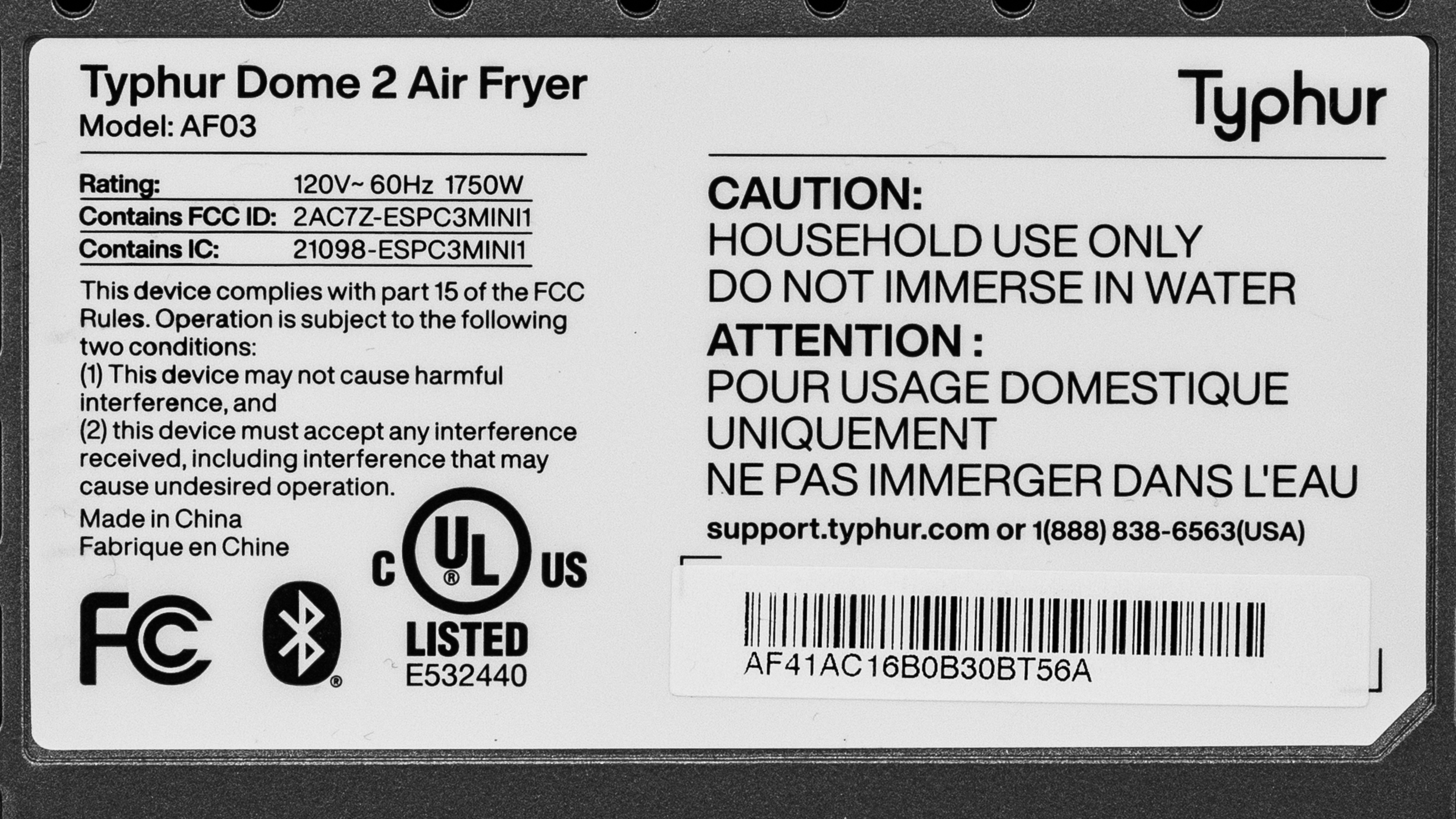 This air fryer is impressively versatile. It has a wide range of temperature settings, and its fan speed gets low enough for dehydrating or proofing dough. Unfortunately, while Typhur rates its top fan speed at 3400RPM, in our testing, we were only able to reach a maximum of 2060RPM, which limits how quickly it can crisp up food. This lower fan speed could be set to help increase the motor's lifespan or to help reduce noise.