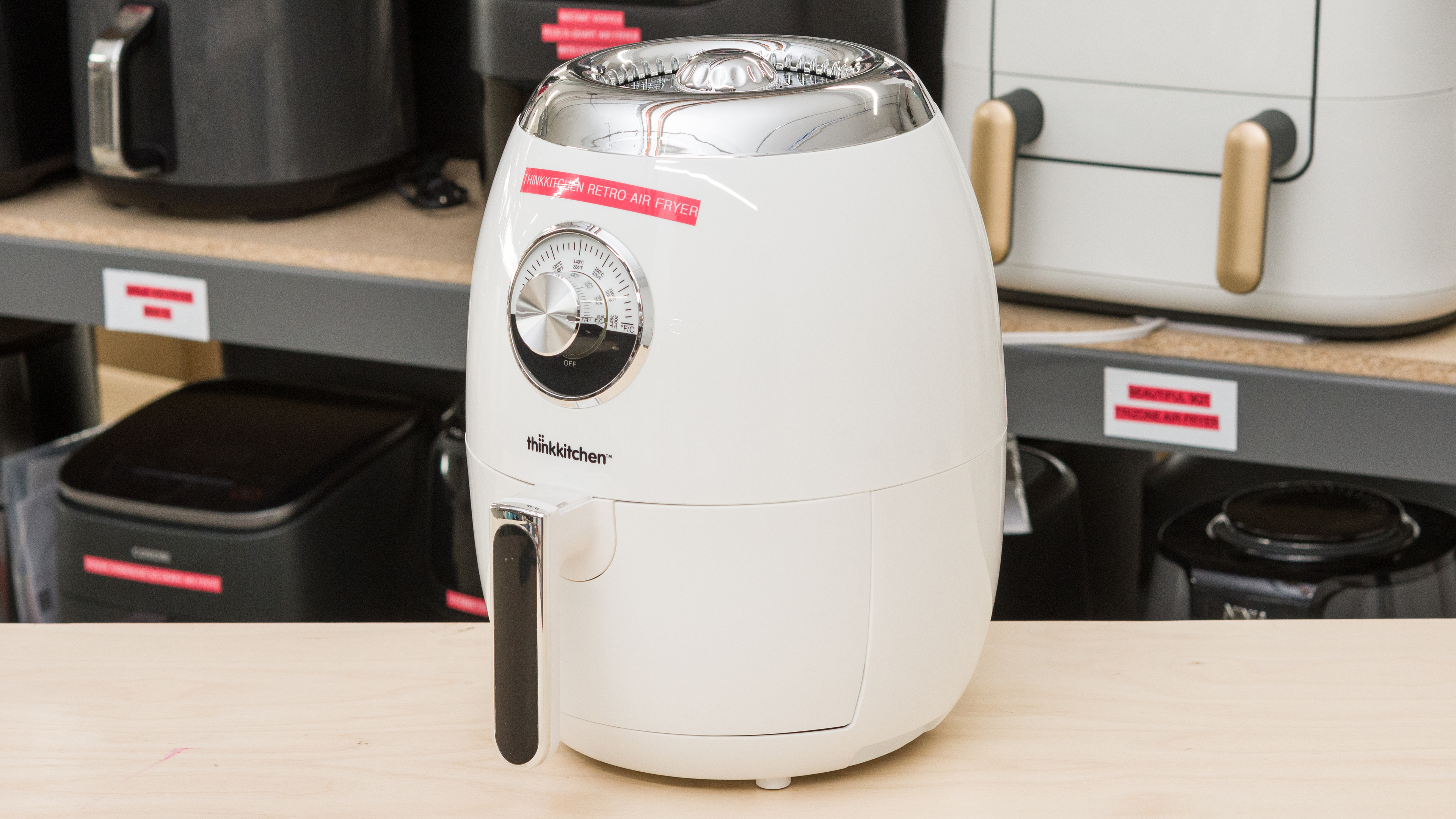 The thinkkitchen Retro Air Fryer is a better option than the Dash Compact. Cooking typically air-fried treats like onion rings, wings, and veggies with the thinkkitchen results in food that is mostly well-cooked and crispy. Conversely, the Dash over or undercooks more than half of each batch. The thinkkitchen also cooks faster. Neither option is particularly versatile; they both have narrow temperature ranges and only one fan speed, but the thinkkitchen maintains a slightly more stable temperature. This stability can help with delicate tasks like baking, so it will perform a bit better than the Dash if you choose to make the odd batch of cookies in your air fryer.
