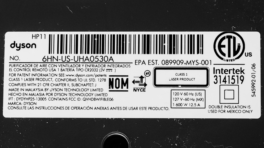 We bought and tested the Dyson Purifier Hot+Cool HP1 in white/silver. You can also find this model from Costco as the Dyson Purifier Hot+Cool HP11; this is a retailer-specific SKU but has the same hardware and features. As a result, our review is valid for both model names. You can see a photo of our unit's label here.