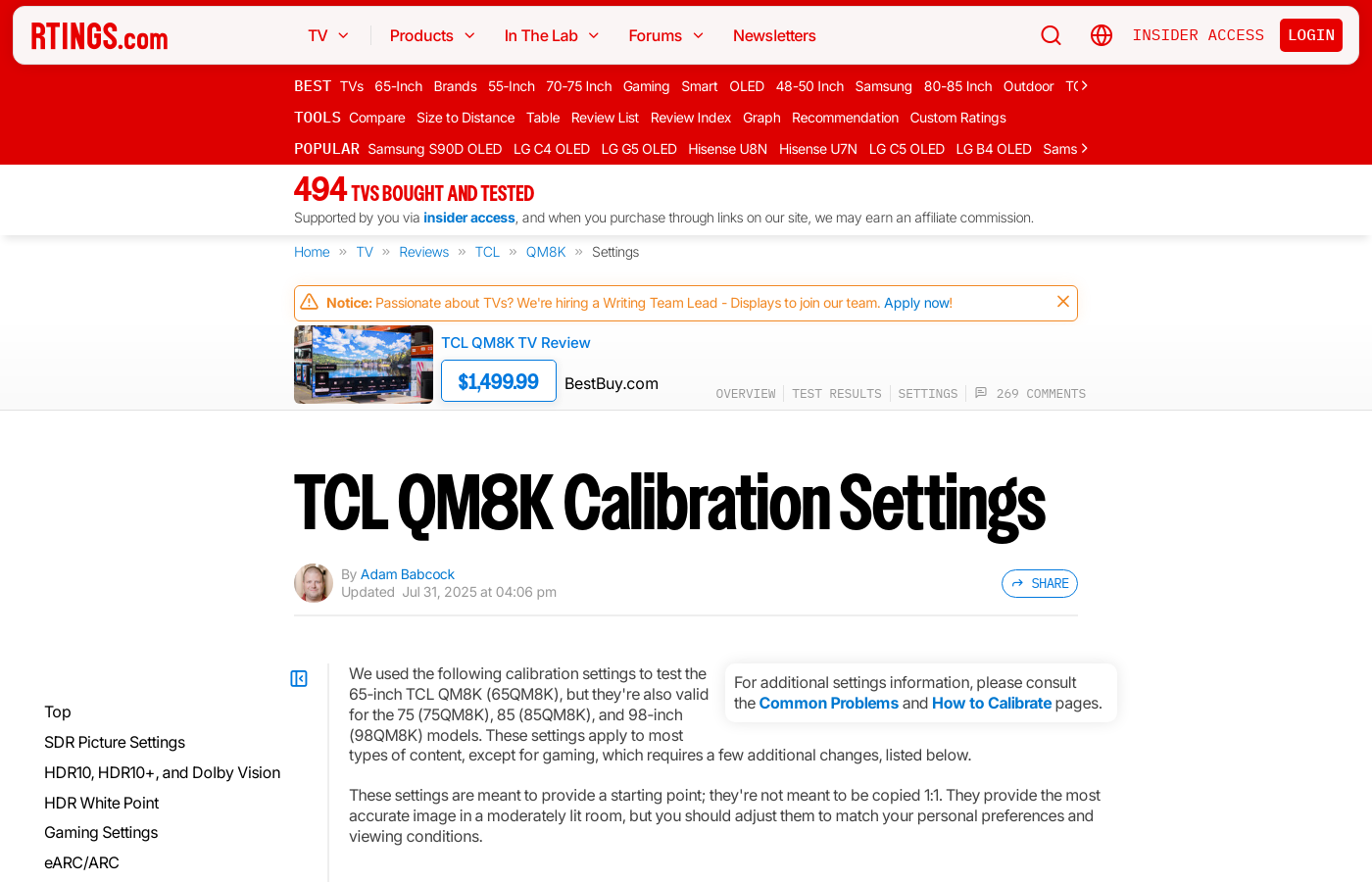Adam is a Senior Writer at RTINGS.com. With a background in engineering and a profound love for taking things apart (and not necessarily putting them back together), he joined in 2018 as a Staff Writer for TVs and monitors. Since then, he's worked on hundreds of TV and monitor reviews and helped launch new product categories like projectors, keyboards, mice, and others.