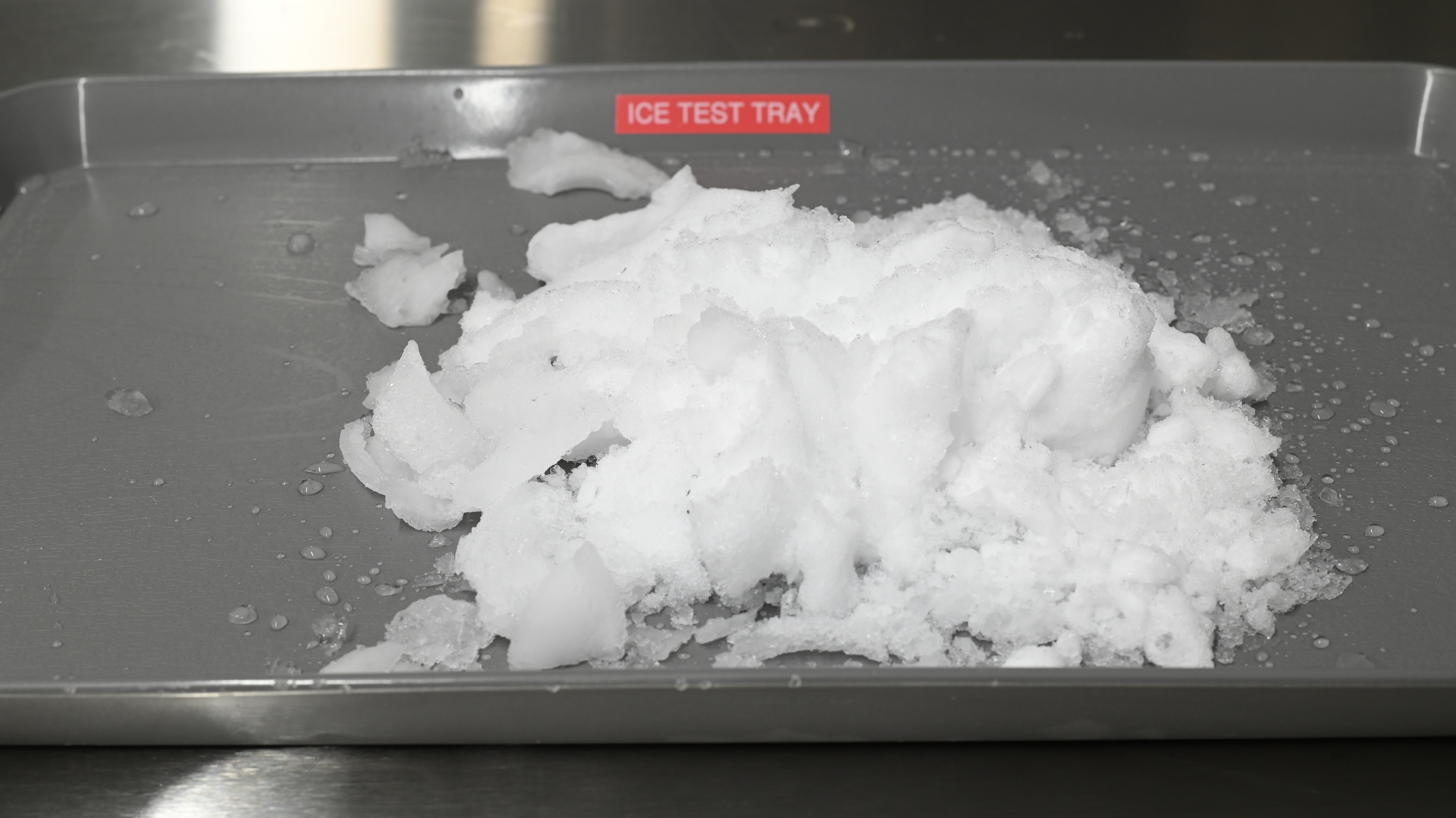 These are the results with four ice cubes in the jar, but the blender can also handle six ice cubes quite easily for larger batches of snow-like crushed ice.