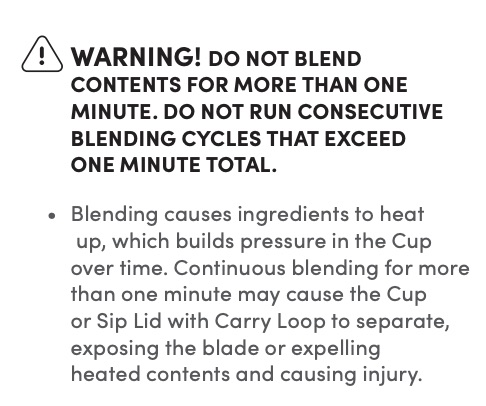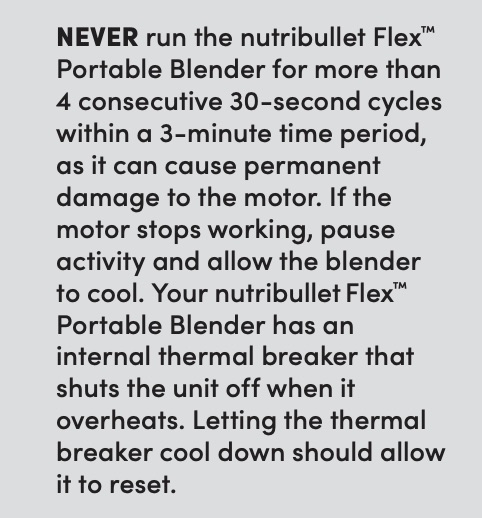 Worse still, the motor tends to overheat during prolonged blending sessions, quickly depleting the battery and becoming inoperable. After it shut off, we couldn't charge it again for about 30 minutes. To be fair, nutribullet's manual warns against extended blending, though the warnings are inconsistent. One section says not to exceed one minute total, while another allows for four 30-second cycles within three minutes. The blender has a thermal breaker that shuts it down when it overheats.