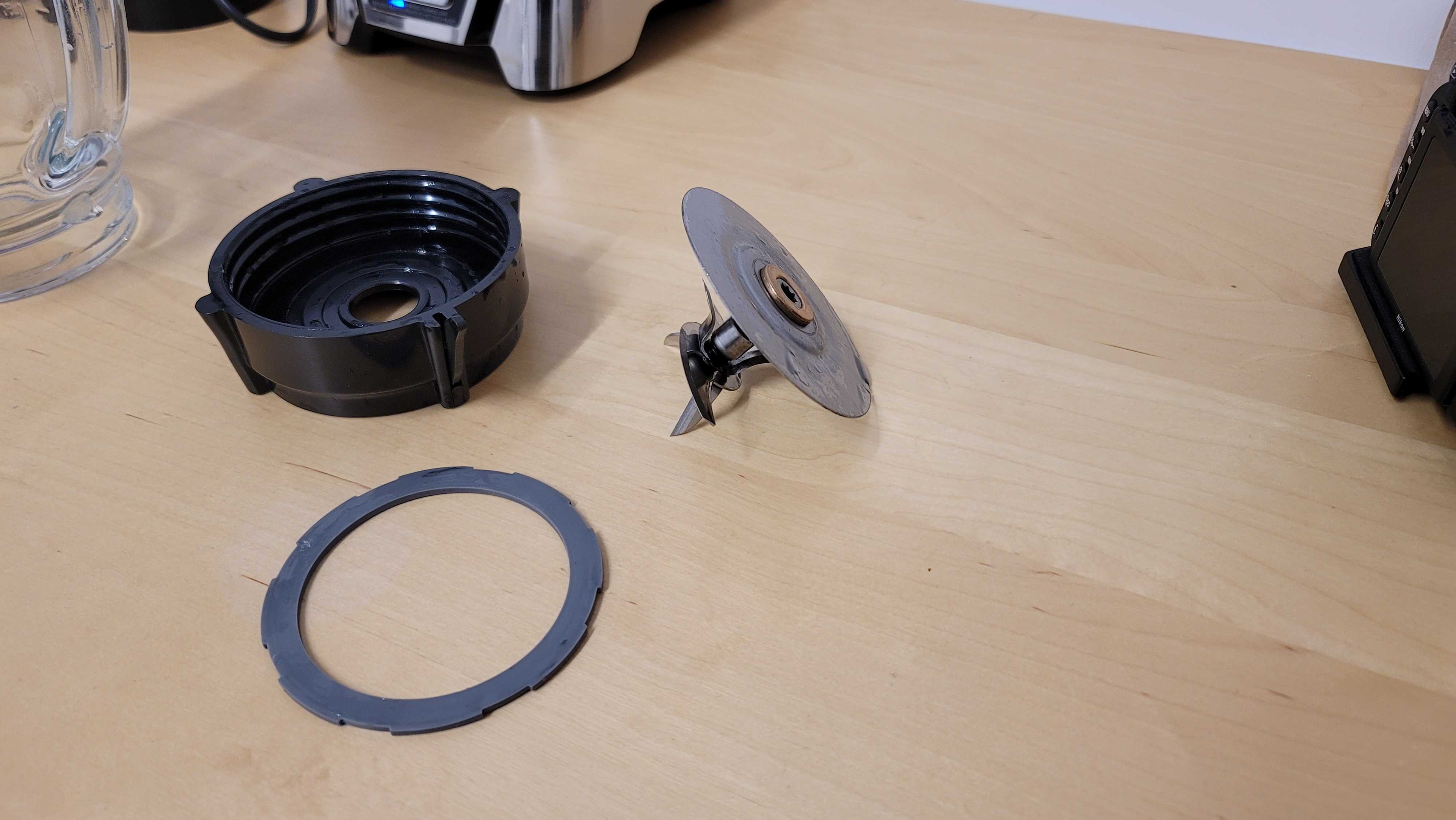 It comes with one removable blade assembly that works with both jars that come included. It's held in place only with a rubber gasket, so it's easy to disassemble the blender for cleaning. The manufacturer advertises that the blender has 'dual-direction technology' that lets it reverse its blending direction to clear jams. However, this wasn't noticeable during testing, and you can't manually activate the feature.