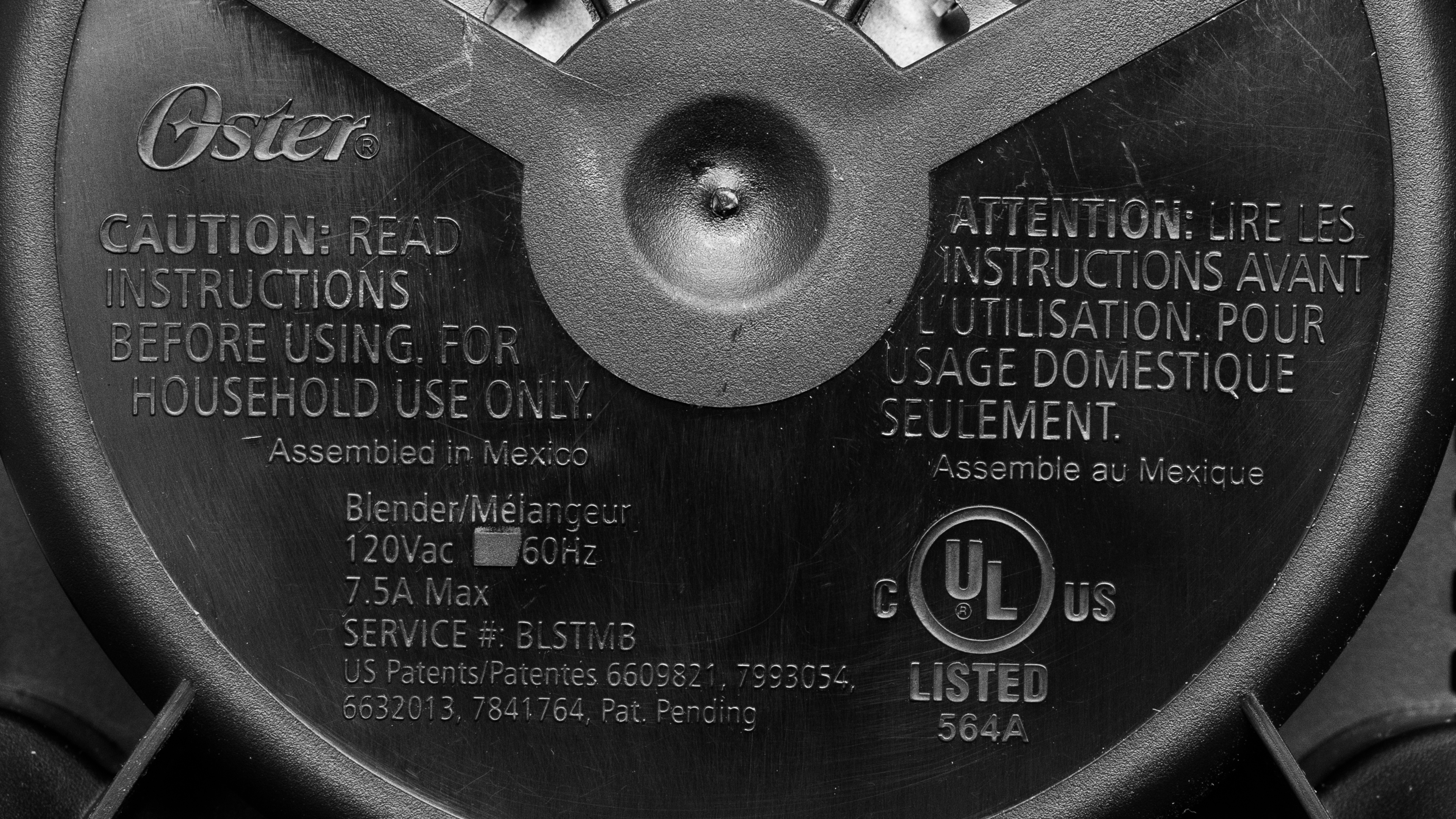 There are a few variants of the Oster Pro 1200 with different accessories. Our model comes with a 48-ounce (6-cup) glass jar and a 24-ounce personal jar, and you can see our unit's label here. We expect our results to be valid for the other variants as well, although we haven't tested the performance of the food processing attachment or the '8-cup Tritan Jar', which is made of plastic and has a larger capacity, meaning it can handle bigger batches. If you come across another variant or your blender is different, please let us know in the discussion section below, and we'll update our review.