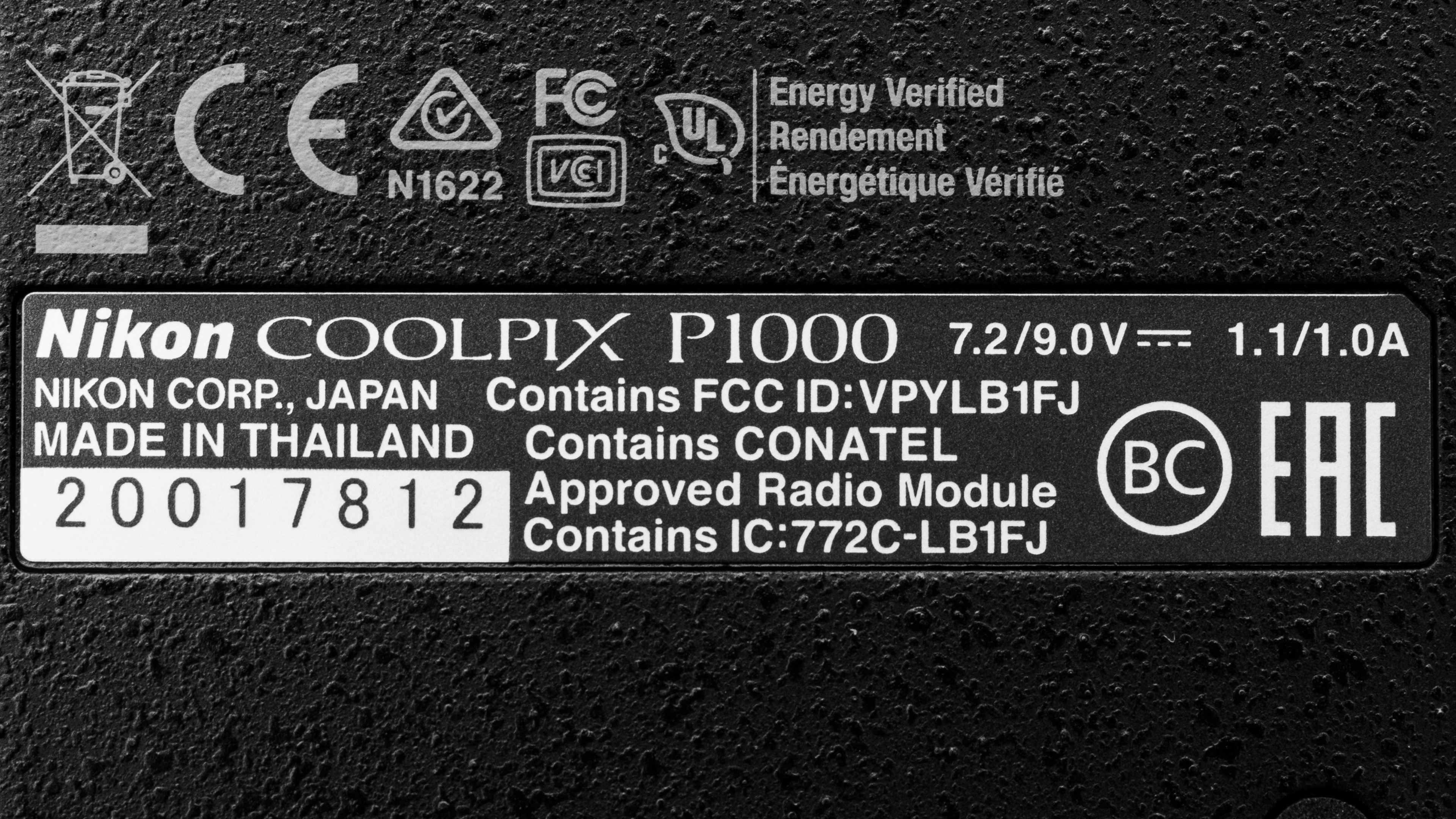 The Nikon COOLPIX P1000 only comes in 'Black'. Here's the label for our unit.