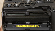 The buttons and dials all feel solid, with very little slack or wobble. The battery and SD card compartments are covered by solid weather-sealed doors, though the hinge is somewhat thin and could break if you aren't careful.