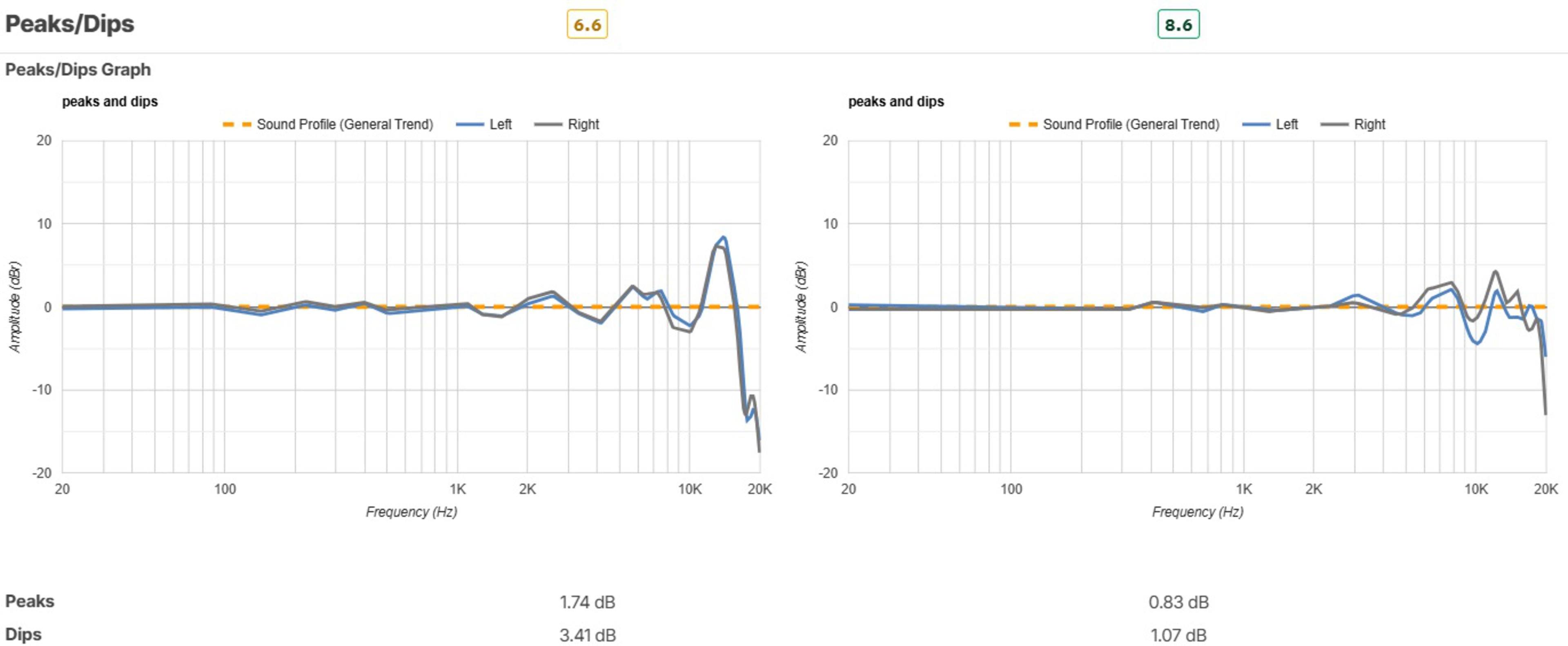 It's worth considering the role of peaks and dips because these help to indicate how smooth a frequency response is and, with extreme deviations, can also offer a clue into where you might experience auditory masking. The Pro 2's overall more conservative frequency response exhibits fewer major peaks and dips, resulting in a sound profile that recreates your audio without as many frequencies "jumping out" within the mix, particularly in the treble. With that said, most of the peaks and dips in the Pro 3's tuning reside in the high-treble at the edges of many people's hearing, but even ignoring that, there are still more across the range in the Pro 3's tuning.