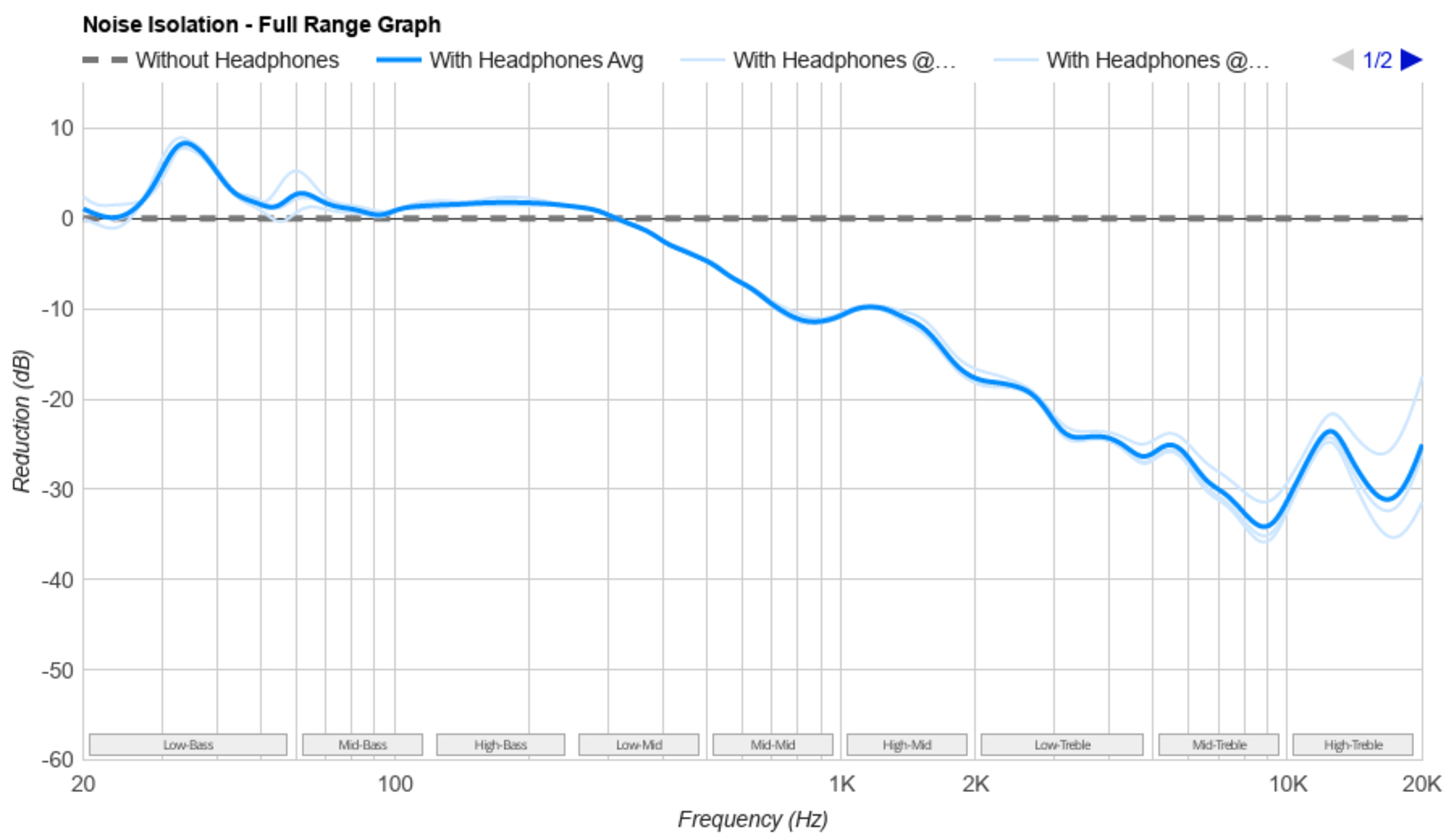 Noise isolation is headphones' ability to isolate you from the outside world by blocking or cancelling the ambient noise that seeps into your audio. For this article, we've selected examples that best represent different headphones' passive isolation capabilities (i.e., how their physical design attenuates external noise). Manufacturers will often add Active Noise Cancellation (ANC) technology to supplement this, but this article is concerned with the impact of the physical design of headphones. It's also worth noting that open-back designs will let in more external noise than closed-back designs across all headphone designs, which you can read more about in this article.