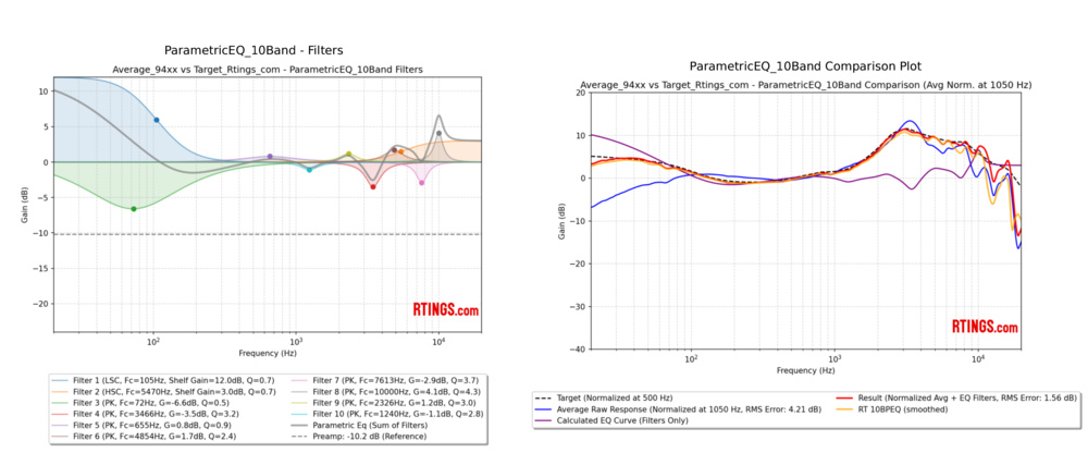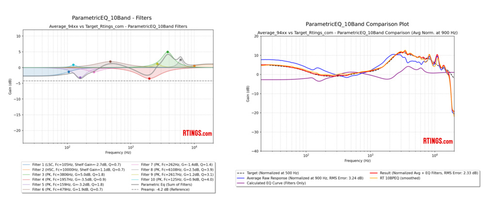 Each EQ is calculated using our slightly modified version of AutoEQ. We've tightened the algorithm's behavior slightly in the treble range, where we thought it was often missing some audible peaks.