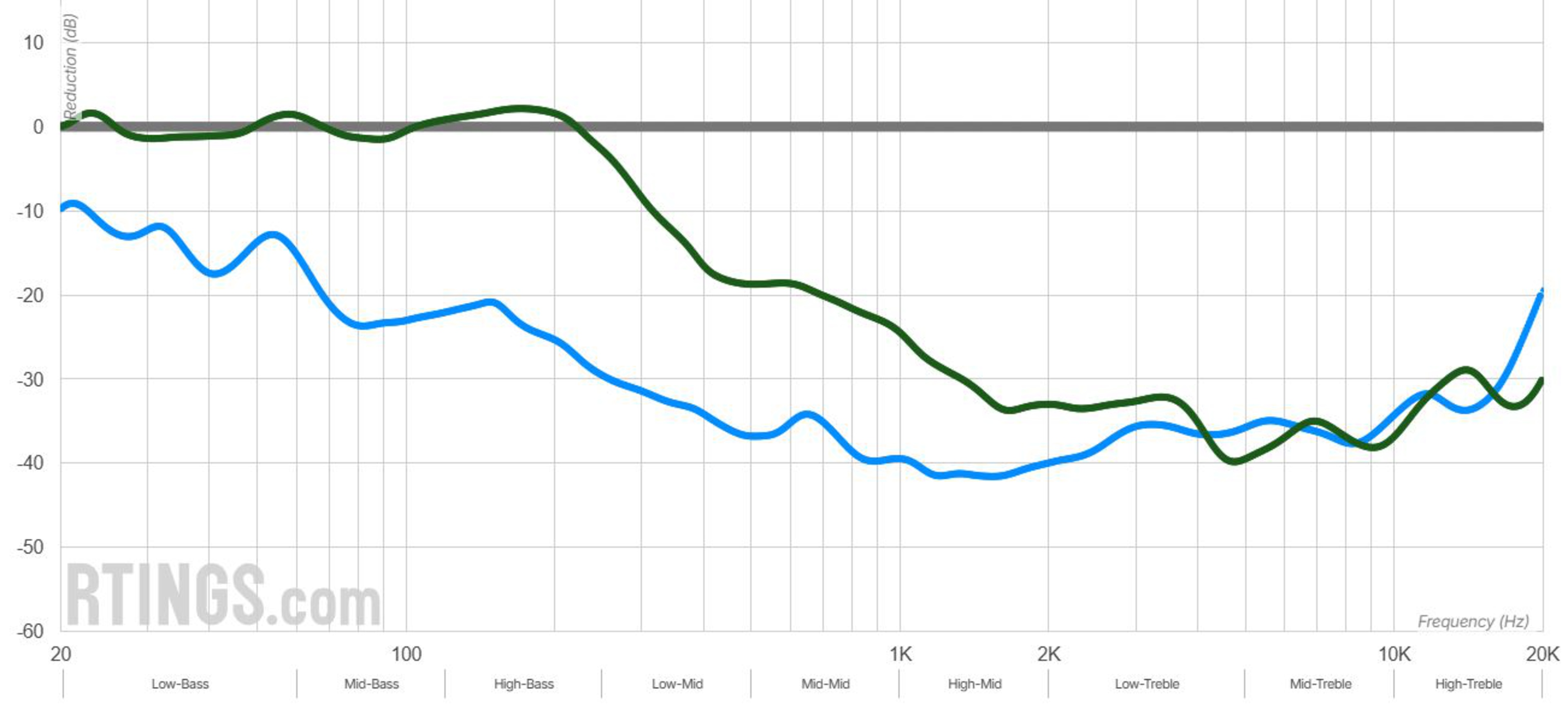 This approach allows modern headphones to take advantage of passive isolation for higher frequency noise (where ANC struggles to cancel sound) and focus their active system on mid and low frequencies, providing solid attenuation across the measured audio spectrum.