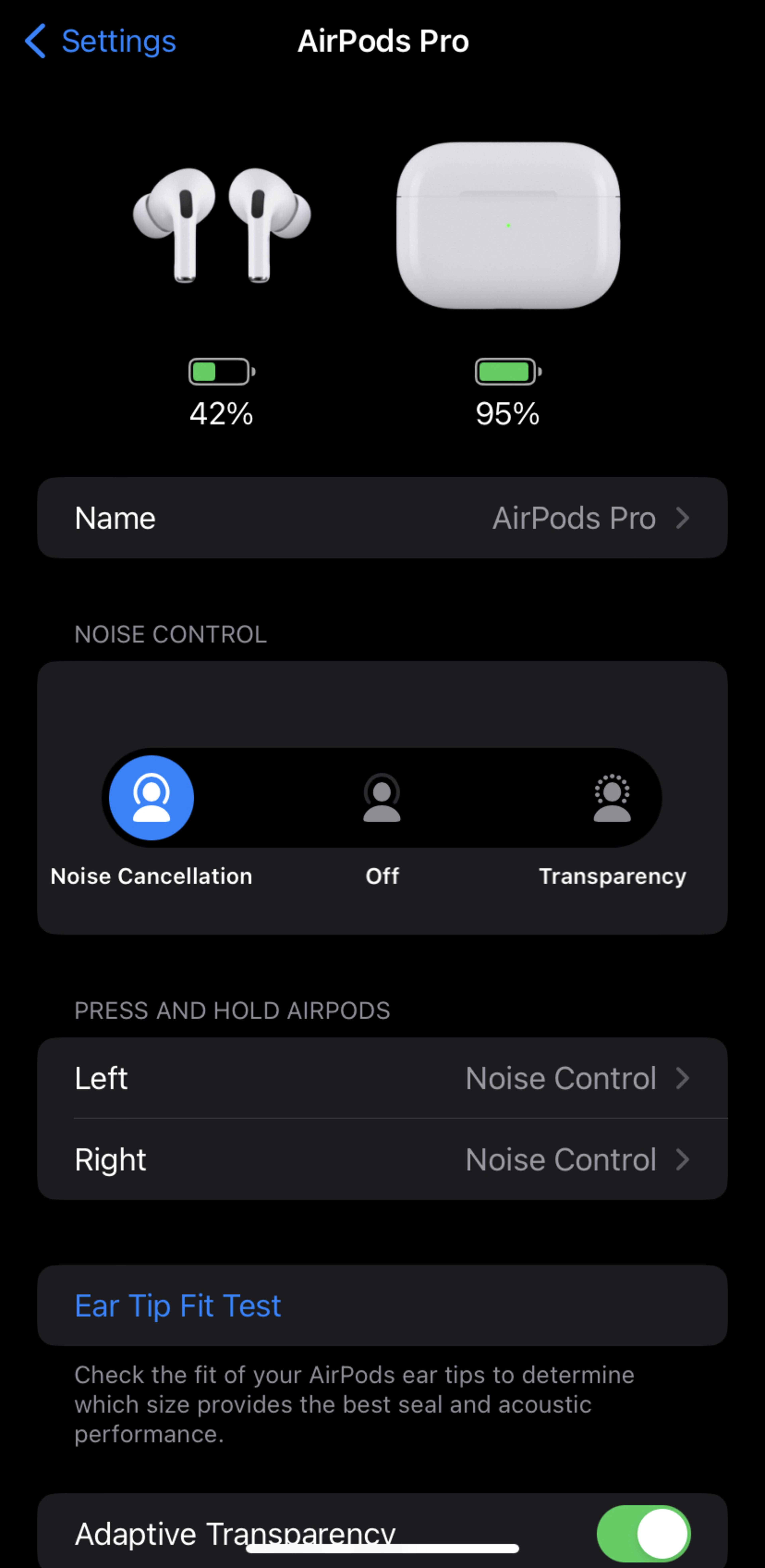 Apple and Sennheiser stick with the generic name (minus the word 'mode'). Apple's AirPods Transparency mode is generally well-regarded for sounding very natural and lifelike. You can switch between ANC and Transparency mode via on-ear controls (such as the stems on the Apple AirPods Pro (2nd generation) or via iOS's Control Center. Like Bose, some Apple headphones also have an Adaptive Transparency mode that automatically reduces extremely loud noises so they don't hurt your ears. Cheaper Sennheiser cans offer a switch between ANC and Transparency in the companion app, while more premium headphones like the Sennheiser MOMENTUM 4 Wireless offer a slider that lets you customize the setting between 100% ANC and 100% Transparency. The MOMENTUM 4 also provides on-ear controls for adjusting the ANC percentages.