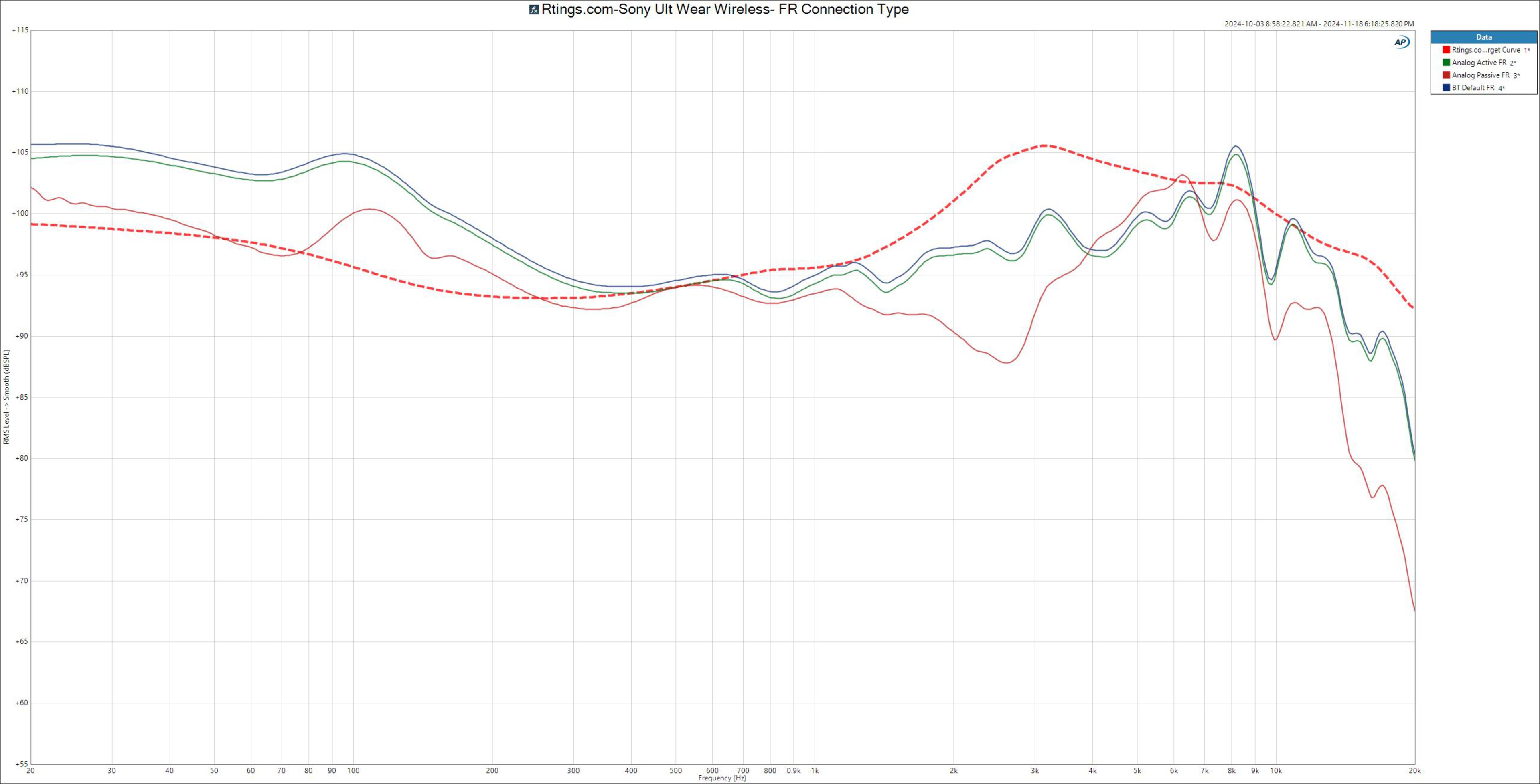 For most listeners, there's little noticeable difference in sound quality between wired and wireless headphones. Unfortunately, this can be difficult to prove decisively because models that can connect via both wired and wireless will often sound slightly different when used actively versus passively. When used actively, audio passes through digital signal processing (DSP) like equalization, which shapes the sound you hear. But when used passively, you bypass this processing. The result is headphones that produce slightly different frequency response profiles when used actively or passively, rather than differences in quality per se. For example, headphones like the Sony ULT WEAR are primarily designed for wireless use but also offer a wired connection. When used with a cable, their sound can vary noticeably depending on whether the headphones are powered on or off. In powered-off (passive) mode, the audio bypasses internal processing and can sound quite different. However, if you wish to use the headphones' active noise cancelling (ANC), you'd have to turn the headphones on. And in powered-on (active) mode, their wired and wireless sound profiles are nearly identical, as the signal still passes through the same internal DSP and amplification.