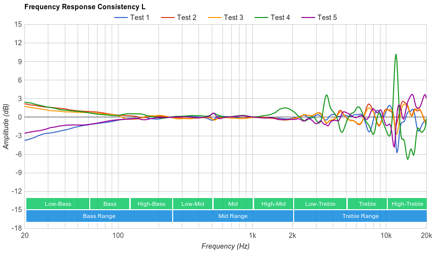 Poor leakage. These headphones leak a considerable amount, due to the semi-open-back design. The majority of the leakage is between 500Hz and 10KHz which is a broad range. The level of the leakage is also quite high.