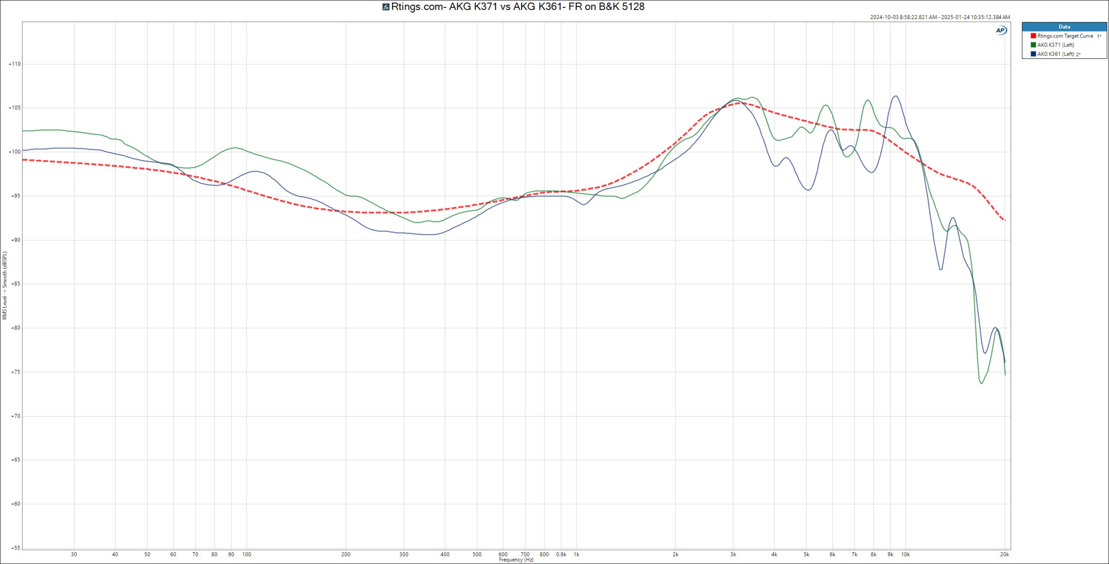 The AKG K361 are closed-back headphones positioned as professional studio monitors that are easier on the wallet. They're a member of a continually growing class of value-oriented headphones that don't sacrifice sound quality for savings. While their sibling, the AKG K371, are similar in performance and tier, the K361 maximize on savings by cutting out external metal components and detailing, opting for a full plastic construction. The K361 also directly compete against the Beyerdynamic DT 770 PRO and trade blows in comfort and compliance to our target, but fall short in consistency between wears. In the realm of passive soundstage, however, both the AKG and Beyerdynamic are closed-back headphones and don't offer as immersive or open an experience as open-back headphones like the Philips Fidelio X2HR and Philips SHP9600.