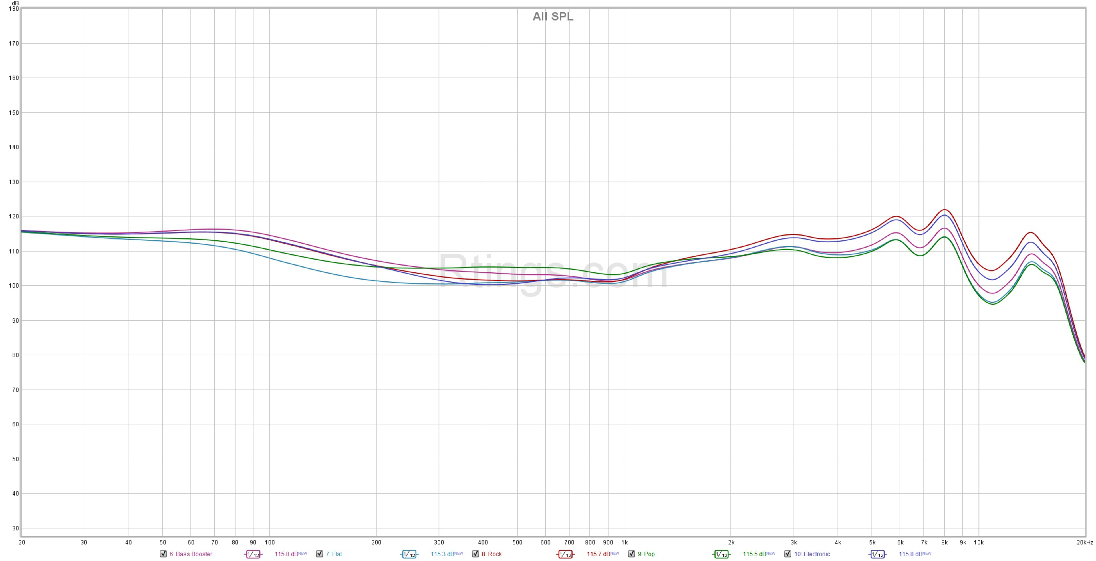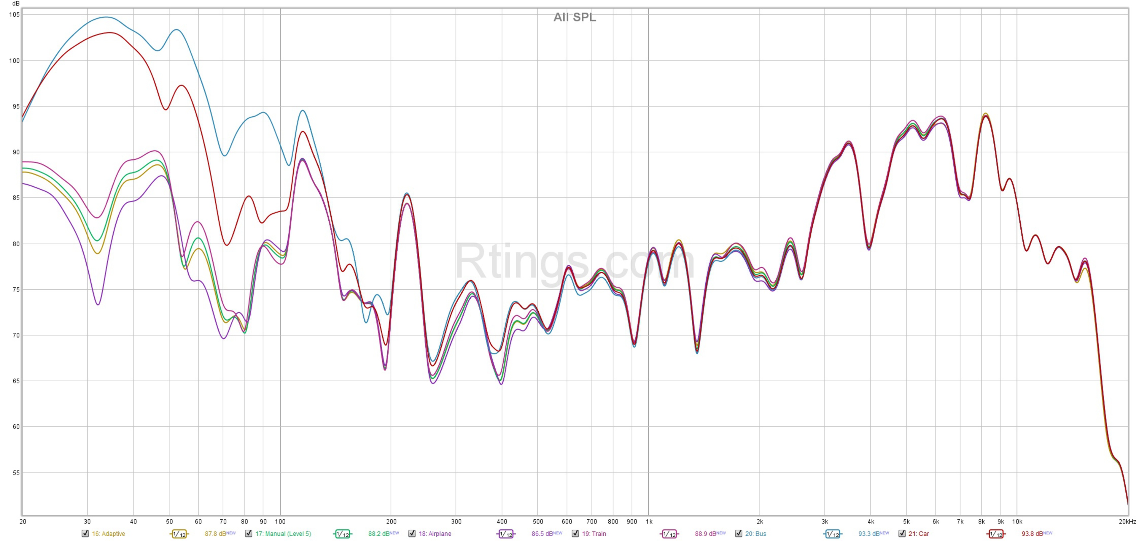 If you'd like a different sound, you're in luck since their companion app has a whopping 22 available EQ presets. We measured how five of the most commonly used presets performed compared to one another, and you can see that data here. There's also a graphic EQ interface to let you fine-tune the mix and HearID, a feature that creates a custom EQ based on an in-app hearing test.