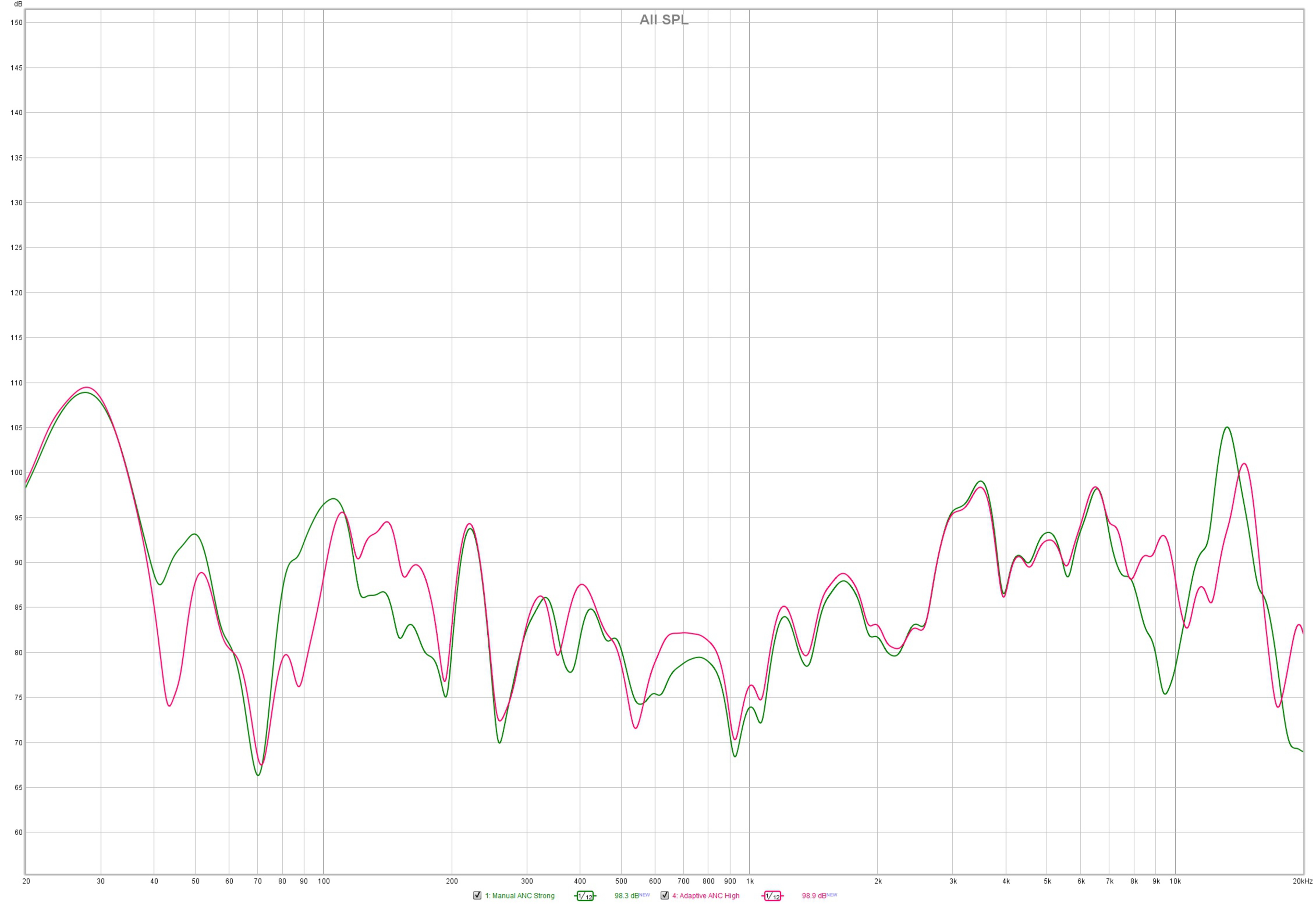 The noise isolation performance is okay. We encountered some issues testing their noise cancelling (ANC) performance. These headphones have an adaptive ANC system, which automatically adjusts performance to better suit the noise around you. However, the ANC can turn off if the skin sensor isn't activated, so we used silicone with copper tape to simulate skin. The adaptive ANC would also switch to a lower level if it determined that our test signal wasn't loud enough. In addition, we noticed a couple of peaks above 0. In the case of the 11-120Hz band, we recorded roughly 6dB of difference between ANC off and the headphones completely removed from our rig. As a result, we are investigating this issue. However, these issues are all limited to our testing, and you won't encounter them in real-life use.