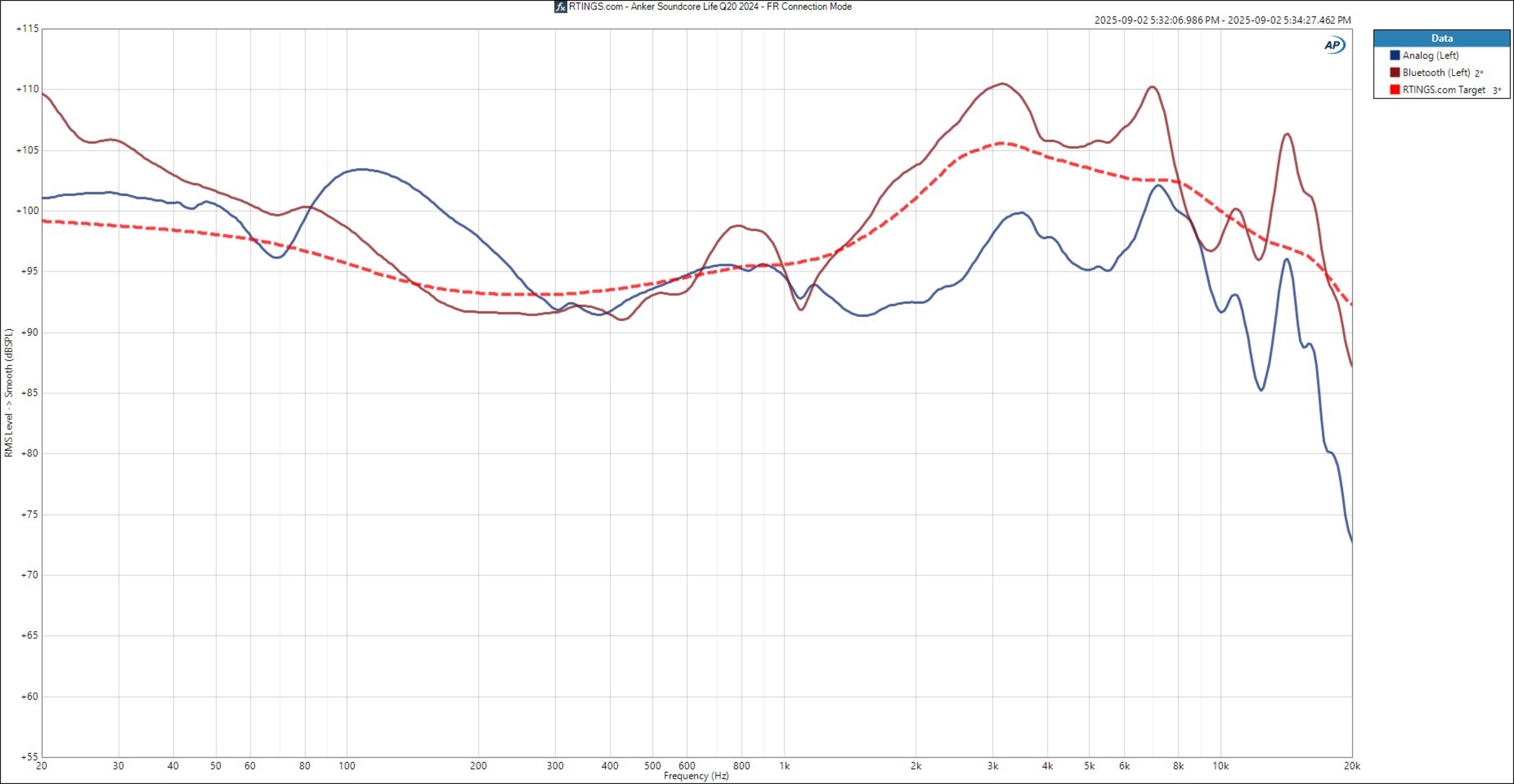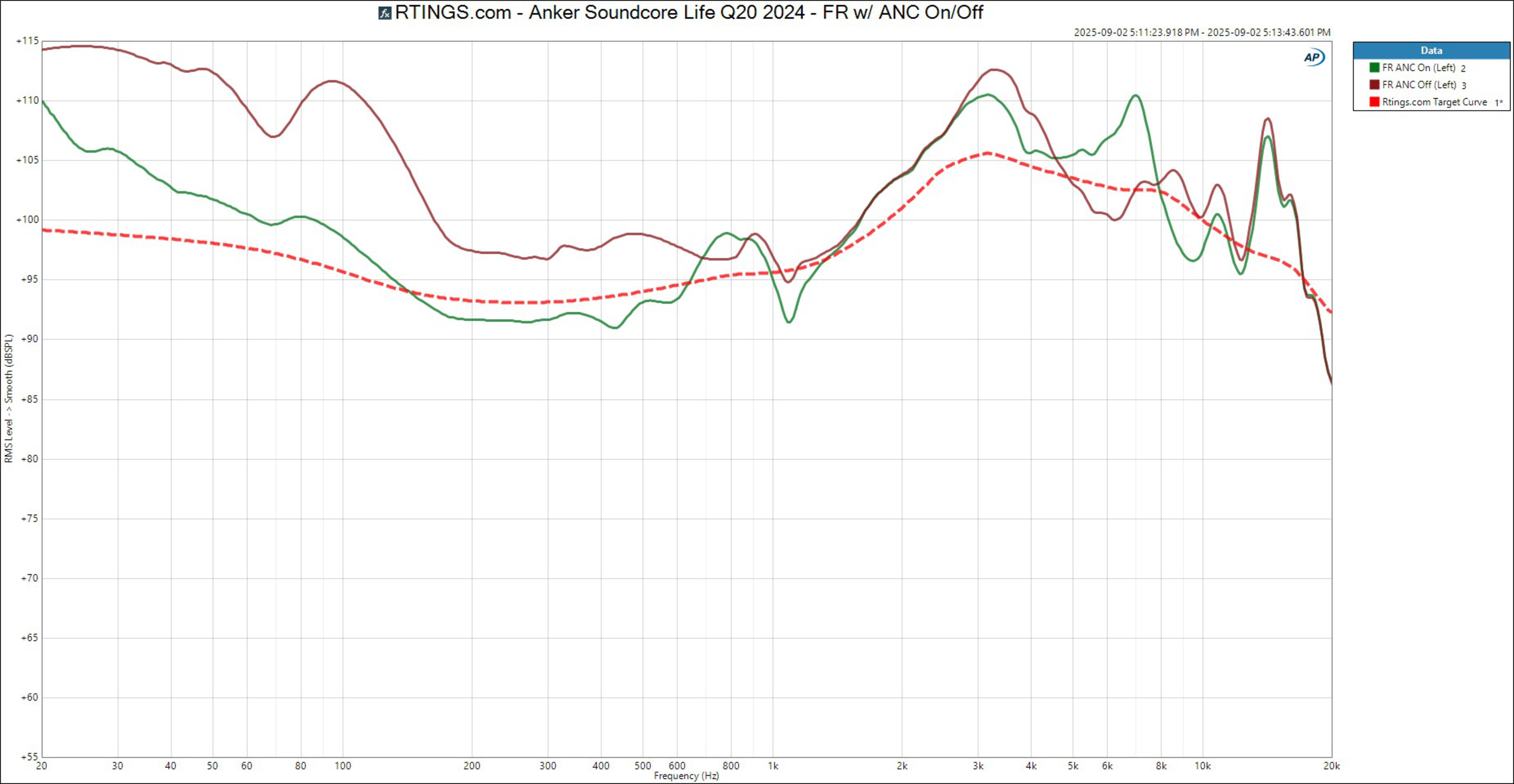 The Anker Soundcore Life Q20 2024 headphones have a disappointing PRTF performance. While their level of interaction with your outer ear (pinna) is much less than what you'd get from an angled reference speaker, they can create a greater sense of space than most closed-back headphones.