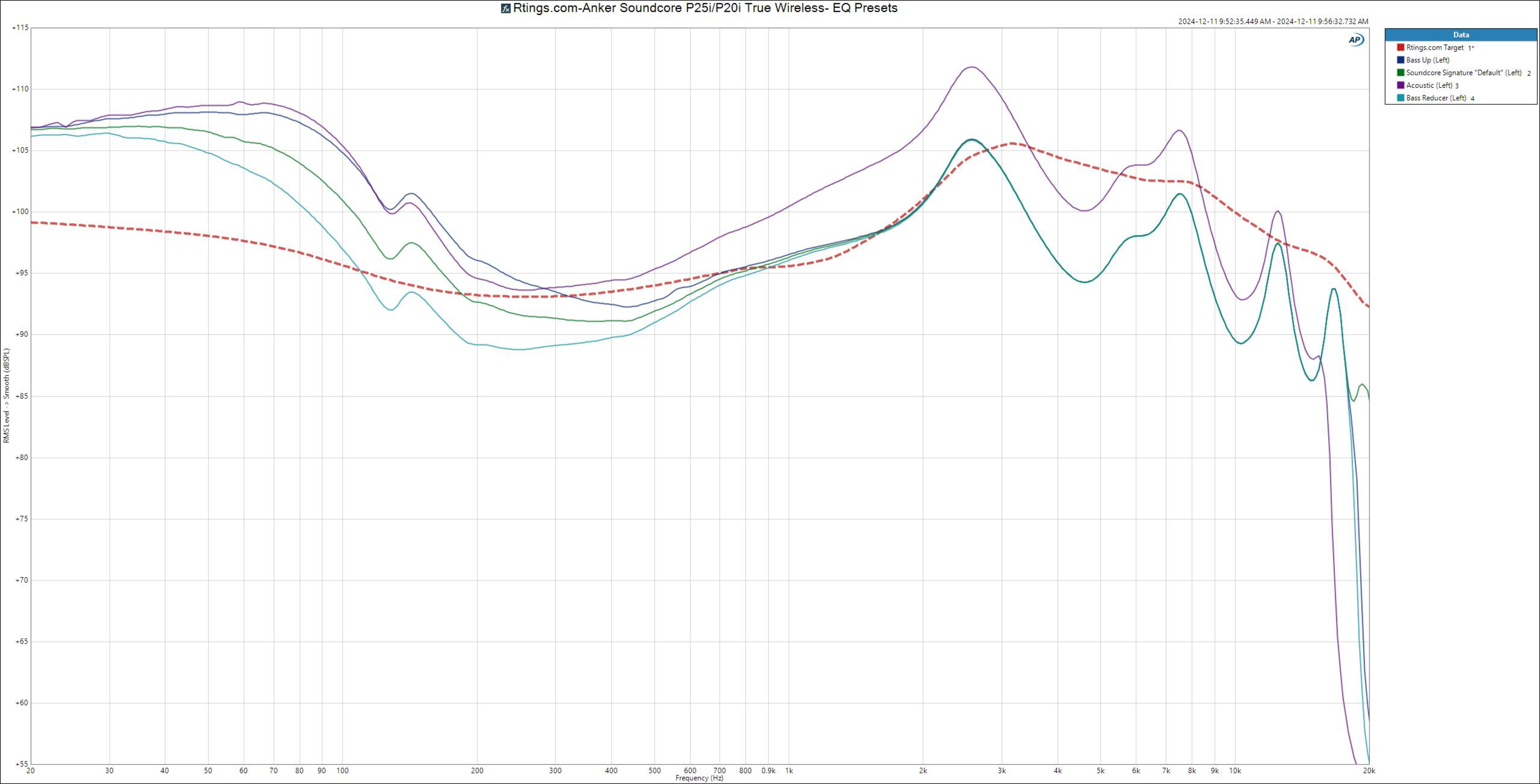 The Anker P20i have outstanding mid-range target compliance. The response in this range is very flat across the whole range, with a gentle peak in the high-mids keeping vocals clear and present.