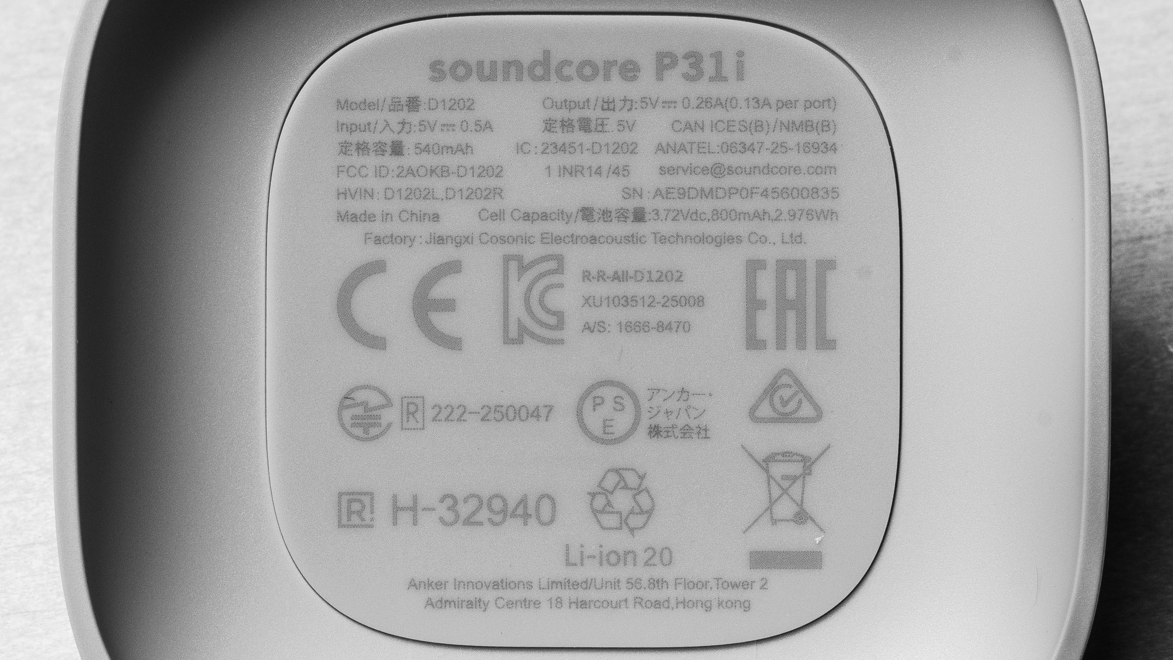 The Anker Soundcore P31i (also sold as the R60i NC in some markets) are available in four color variants: 'Black,' 'White, 'Pink,' and 'Blue.' We tested the 'Blue' variant (and took a picture of its label), but we expect other variants to perform similarly.