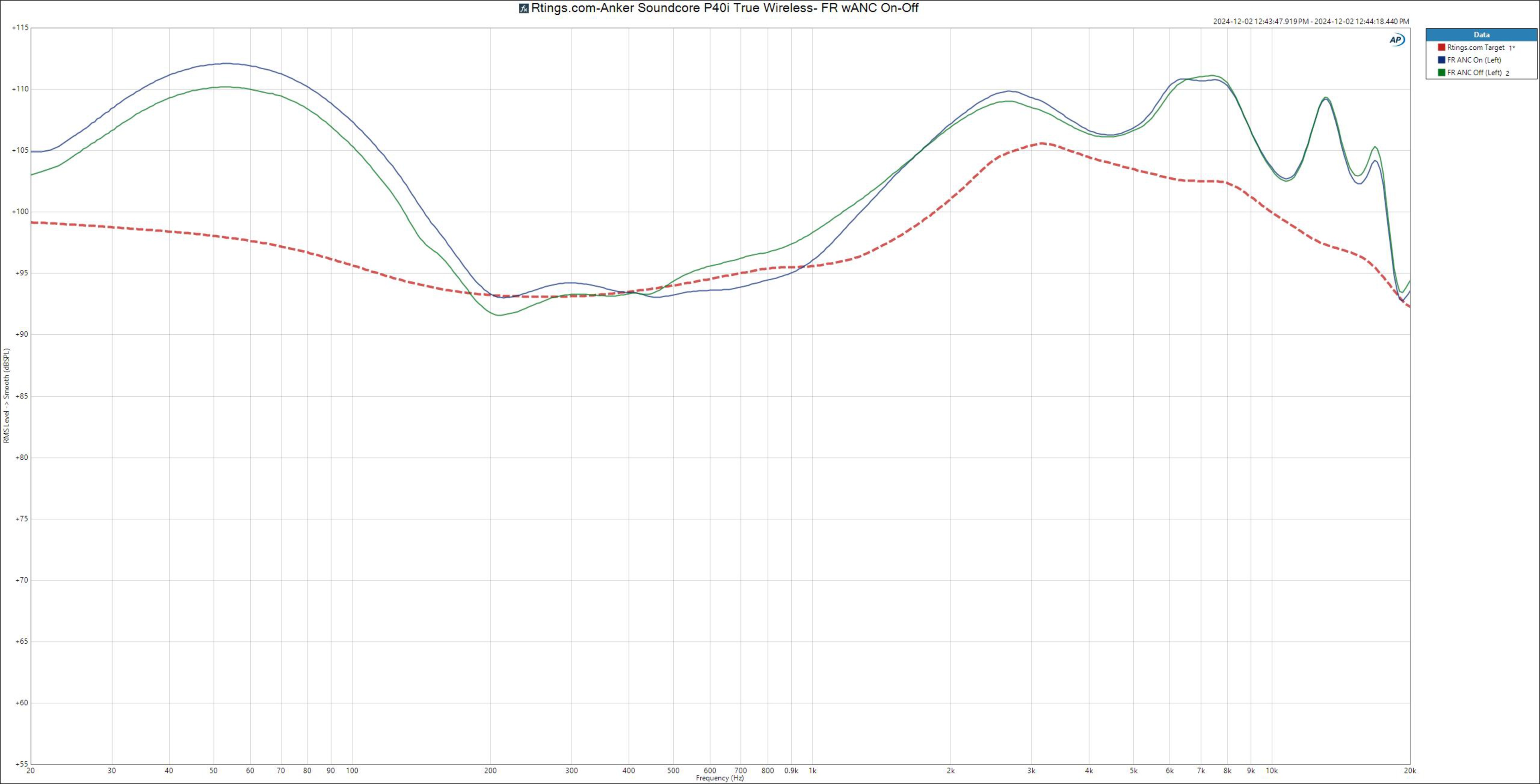 If this tuning doesn't work for you and you'd prefer to make some tweaks, you can adjust the earbuds' sound using presets or the app's graphic EQ. You can toggle Anker's BassUp feature, which is common in most Anker products. We've taken measurements of the main five of the 23 presets in the EQ section, and you can also create your own custom EQ profile. These headphones sound very slightly different with ANC turned on or off.
