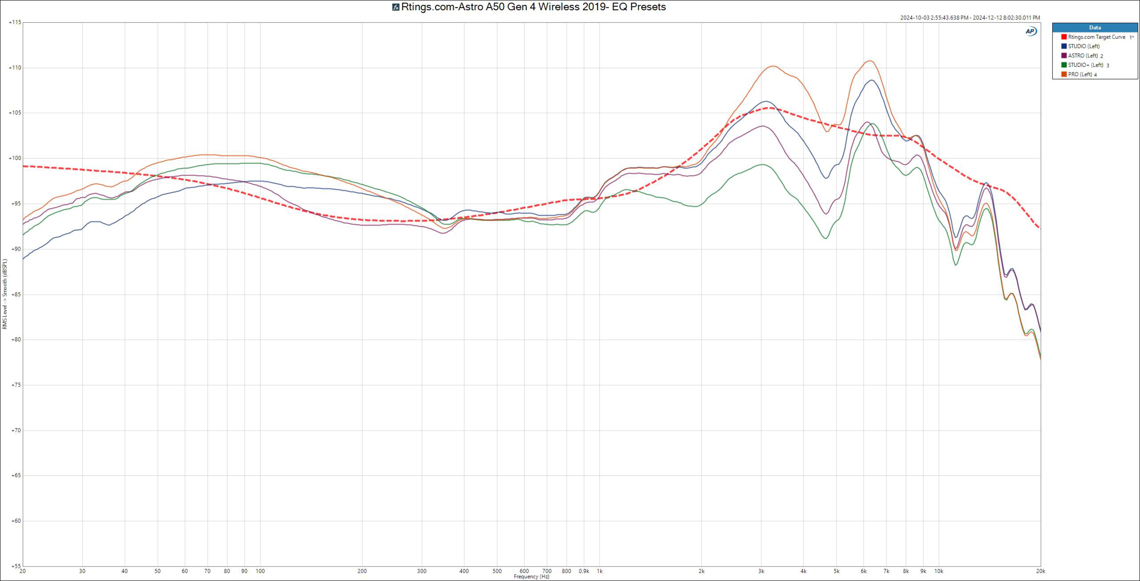 The Astro A50 Gen 4 have great frequency response consistency. Most individuals can expect their listening experience to match our frequency response measurements, even between reseats.