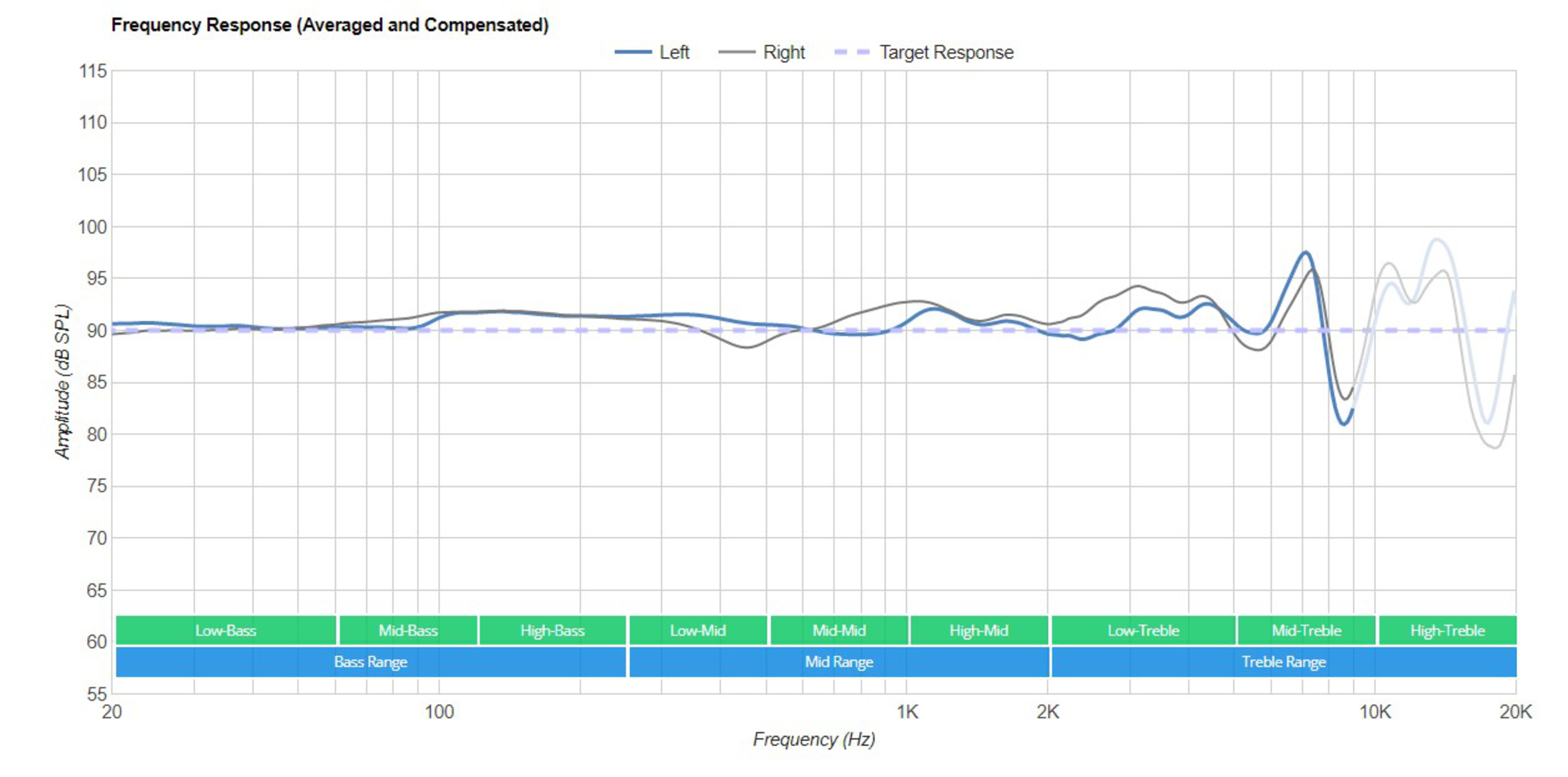 Their treble compliance is remarkable. The range is just a touch underemphasized, but not at the cost of much clarity. A couple of small dips in the low- and mid-treble mean some sounds like cymbals might feel a little dull depending on their pitch. But, in general, your audio will sound extremely clear and detailed.