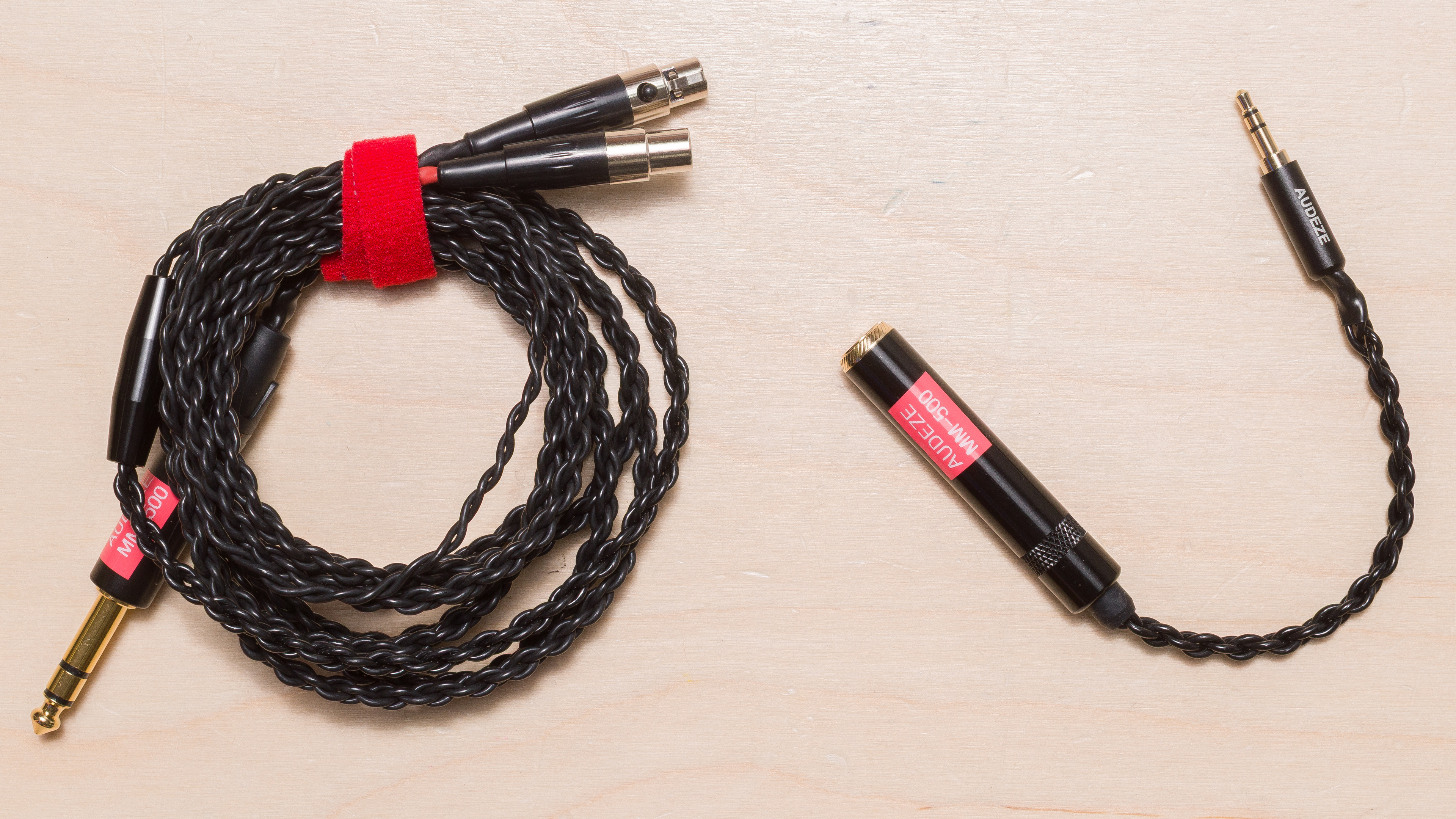 The headphones come with a detachable cable (2.34 m / 7.68 ft) split mini-XLR to 1/4" TRS cable. Both mini-XLR plugs can go in either ear cup, so Audeze have marked the right channel connector with a red sleeve. The headphones also come with a 1/4" to 1/8" adapter. As expected from most analog headphones, there's virtually no latency, so your audio and video will be synced properly when watching videos.