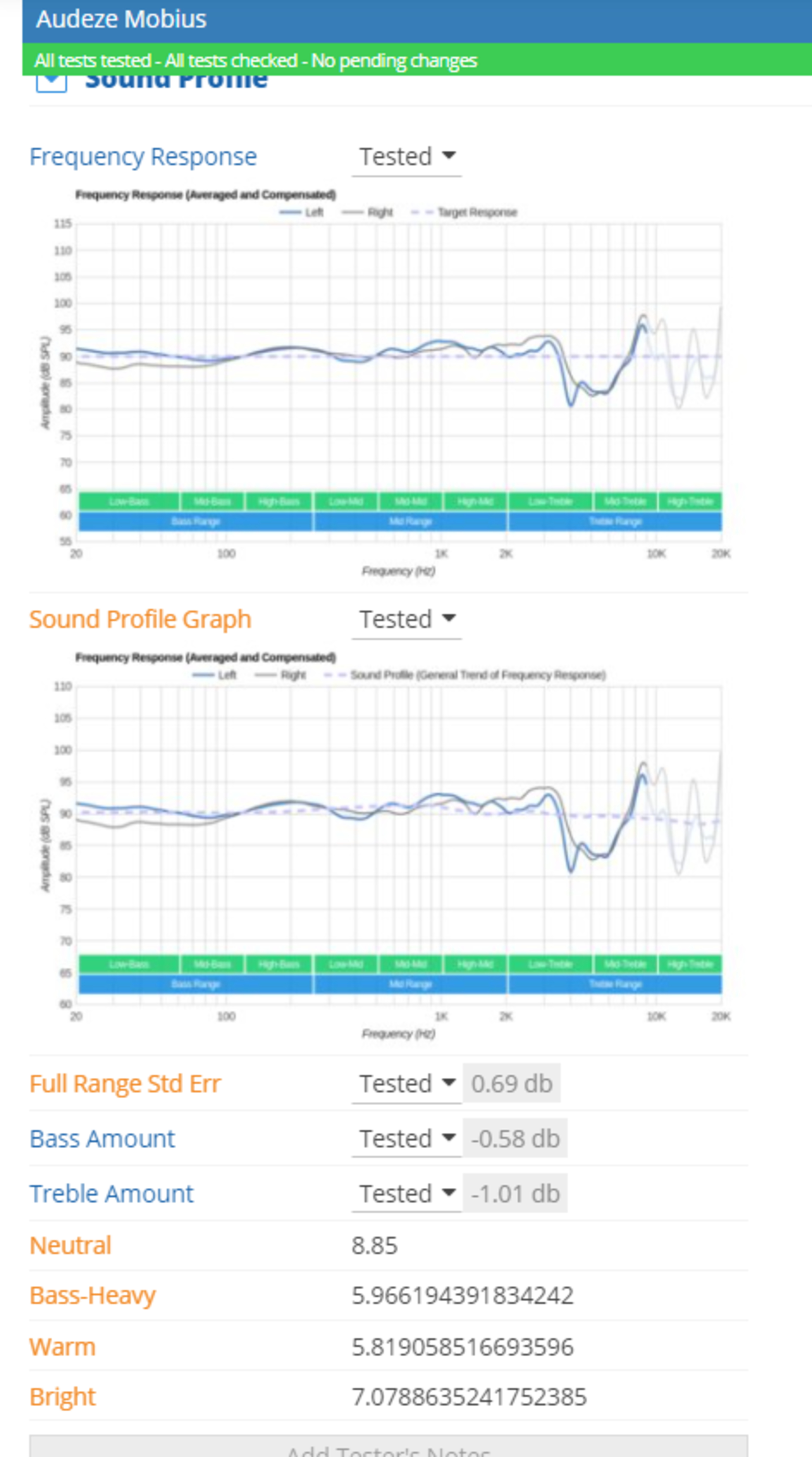 The Audeze Mobius' frequency response consistency is okay. They deliver bass fairly consistently, but their treble response is a bit more inconsistent. They sound different depending on their fit and positioning, so you may need to adjust them on your head each time you use them to get a more consistent sound.