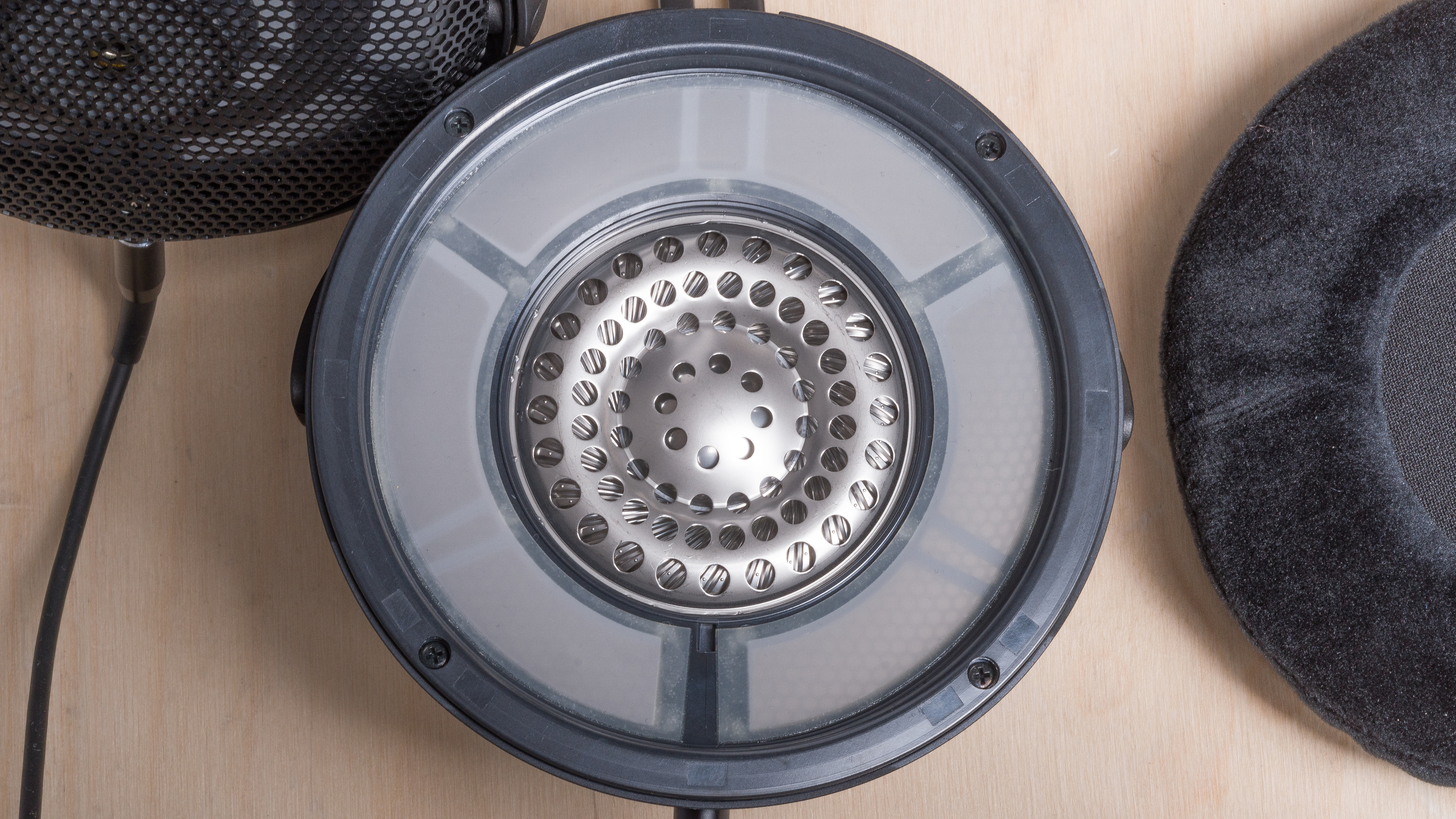 These over-ear headphones have a sleek, modern look. Their lightweight magnesium alloy frame means these headphones weigh notably less than comparable offerings from rival brands, such as the Beyerdynamic DT 1990 PRO MKII. The ear cups and headband are adorned with soft velour padding. Their open-back design showcases the large 58 mm driver components in each ear cup., which are located behind the honeycombed housing.