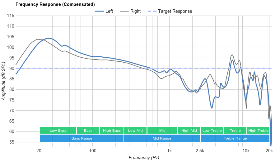 They have good leakage performance. The majority of leakage happens in the mid-range, around 600Hz, and there's little sound leaking above 3kHz.