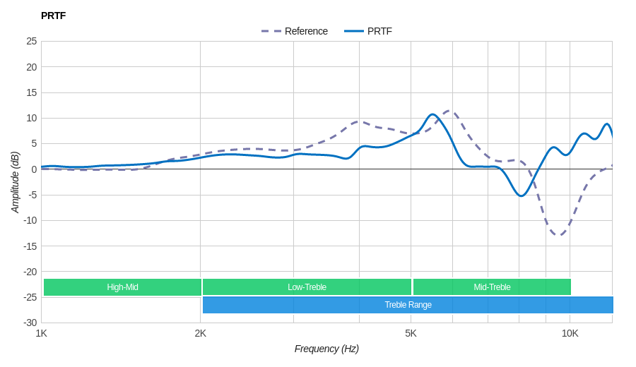 Mostly, these headphones follow their own sound profile with fair consistency. The peak through most of the bass range leads to a punchier, boomier sound, while the transition between high-bass and low-mid makes bass harmonics slightly thin compared to bass fundamentals. High-mids and (some) low-treble are emphasized so the highest notes of a guitar, for instance, will sound disproportionately loud and harsher compared to low notes on a guitar. The significant dip in low-treble to mid-treble means that details get lost. The peak in higher treble frequencies results in piercing harmonics, like crash cymbals.