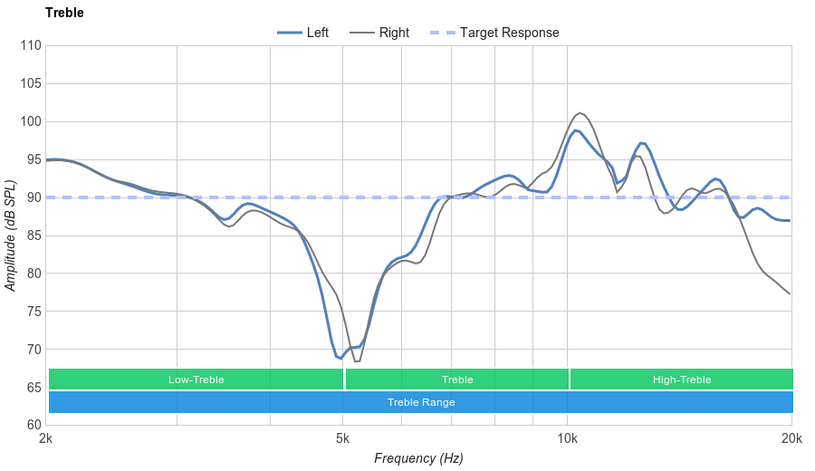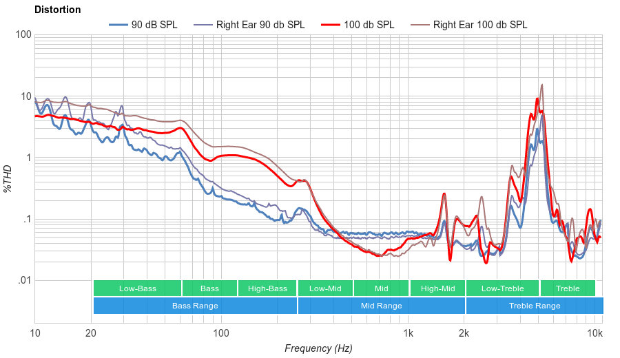 Average leakage. A significant portion of the leakage is between 500Hz and 3kHz, which is rather broad. However, the overall level of the leakage is quite low, which makes up for the broad leakage profile.