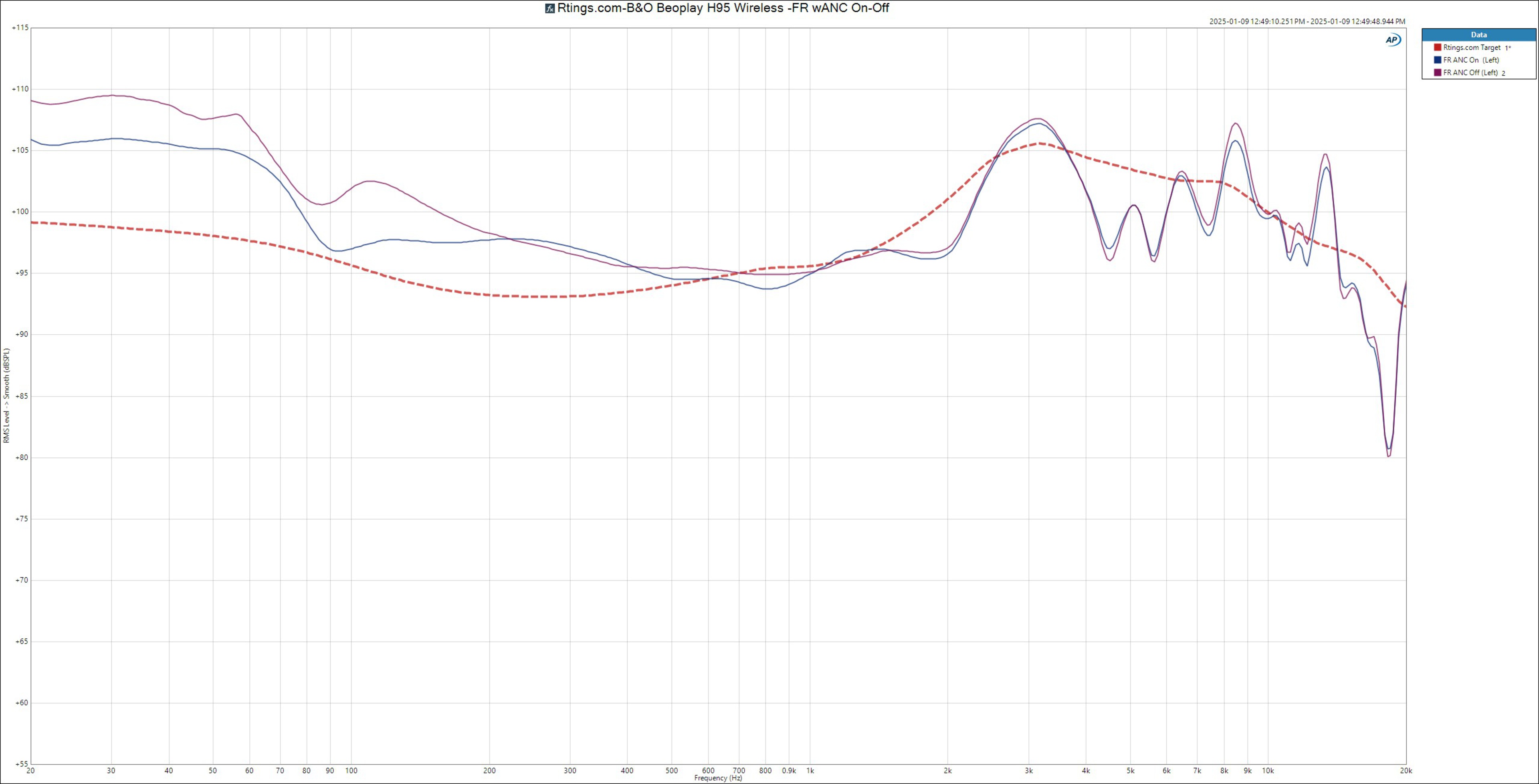 The Bang & Olufsen Beoplay H95 have very good frequency response consistency. They're somewhat prone to inconsistencies in the bass and treble delivery due to their smaller ear cups and tight fit, especially if you have thick hair or wear glasses. That said, if you take the time to adjust the fit and achieve a good seal, you'll get consistent audio delivery between listening sessions.
