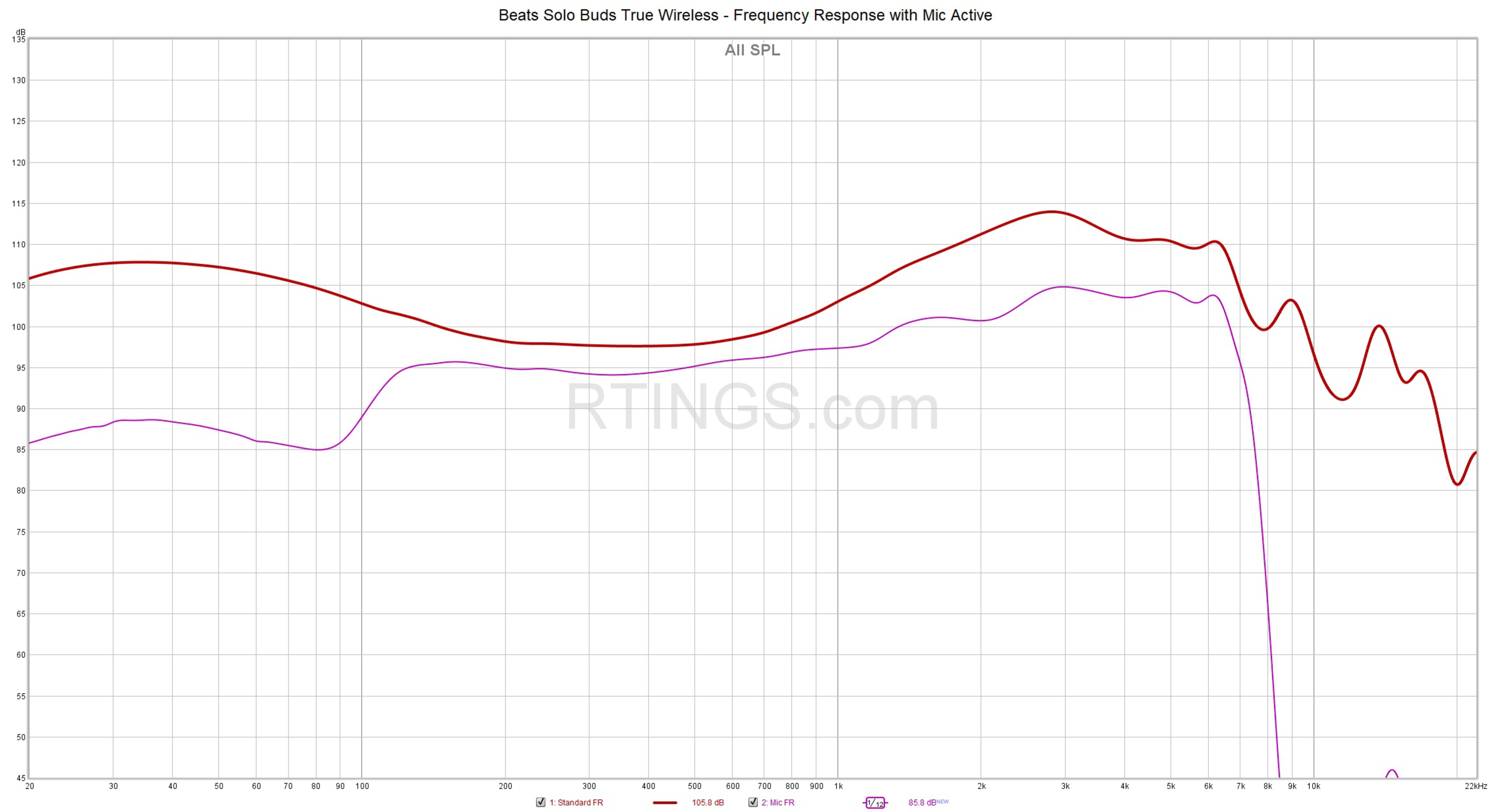 The mic's disappointing recording quality is even worse than the mediocre mic on the Beats Fit Pro True Wireless. It emphasizes the high-mids and treble ranges while heavily reducing lower frequencies, resulting in clear but tinny-sounding speech that lacks body. The mic also doesn't capture much audio in the mid- and high-treble ranges, so your voice will lack a little air and sparkle. That said, your speech will be comprehensible. The buds' integrated noise removal system produces an inaudible artifact above most people's hearing range, which is additionally amplified by our testing rig. It will not affect your experience with these earbuds.