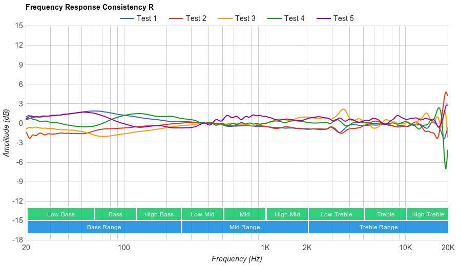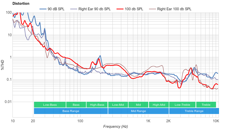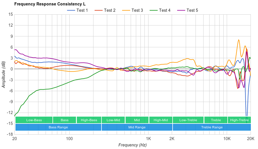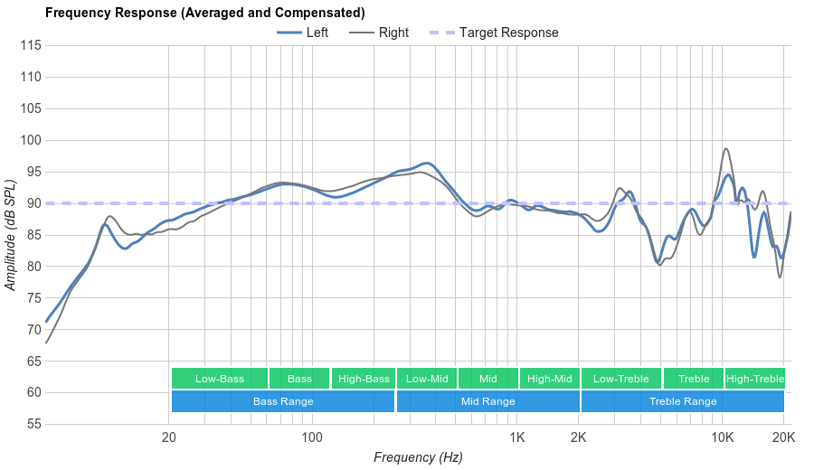 Unfortunately, their bass delivery can vary noticeably across users: the quality of the fit, seal, and whether you wear glasses all affect how the bass sounds to you. Our response represents the average bass response, and your experience may vary.