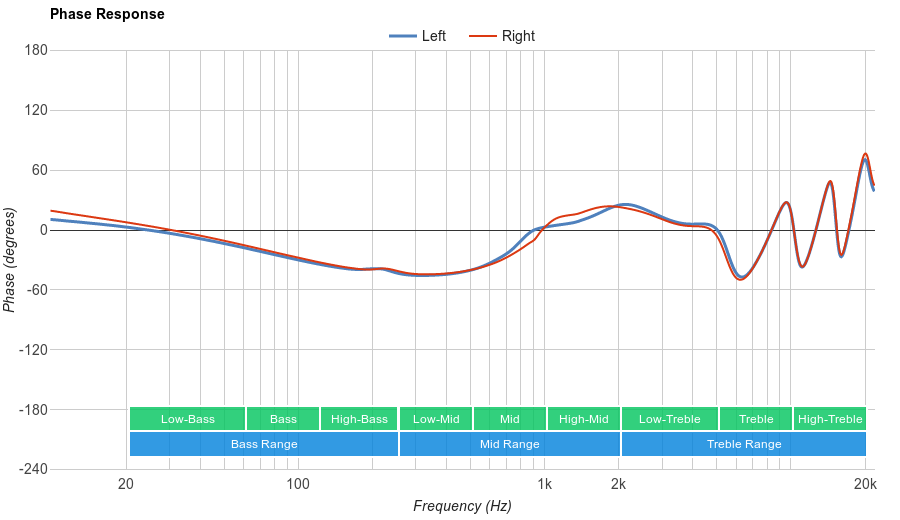 Average mid-range performance for the Beats urBeats. Low-mid is slightly overemphasized, which adds to the muddiness and boominess caused by the excess high-bass. Mid and high-mid are consistently underemphasized by more than 5dB, weakening vocals/leads relative to the lower instruments and pushing them to the back of the mix.
