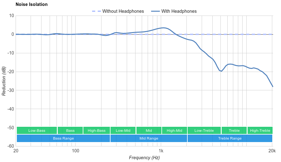 Poor Isolation. The DT-880 is rated as semi-open but their performance is very similar to fully open-back headphones, and therefore don't isolate well. They provide no isolation in the Bass and Mid Ranges. In the Treble Range, they achieve an average of 15dB of reduction which is about average.