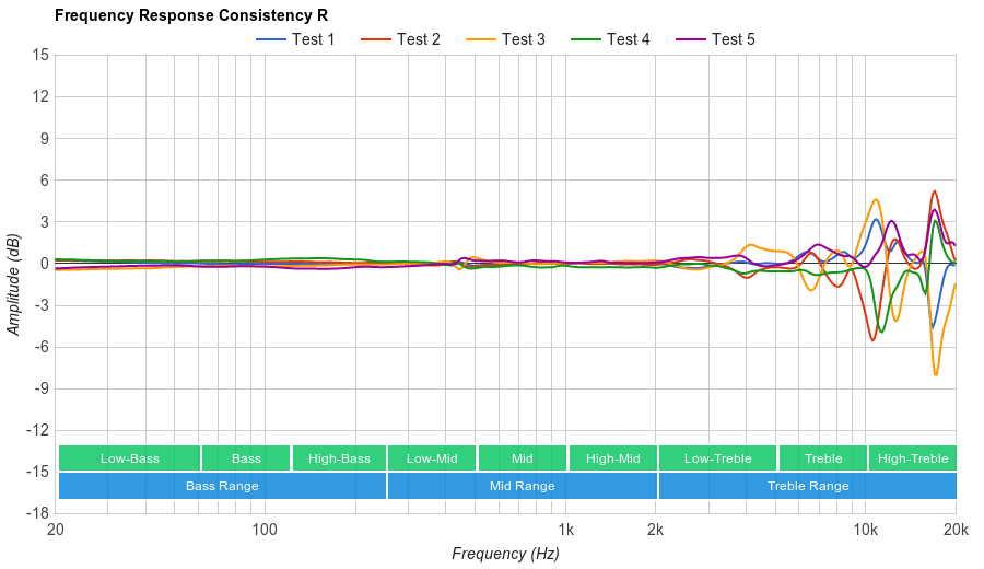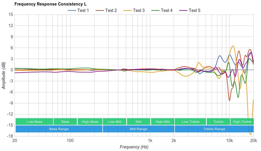 The Beyerdynamic DT 990 PRO have excellent frequency response consistency. Regardless of your face shape or facial features, you'll be able to achieve consistent audio delivery between reseats, and our frequency response results will be in line with what you experience.