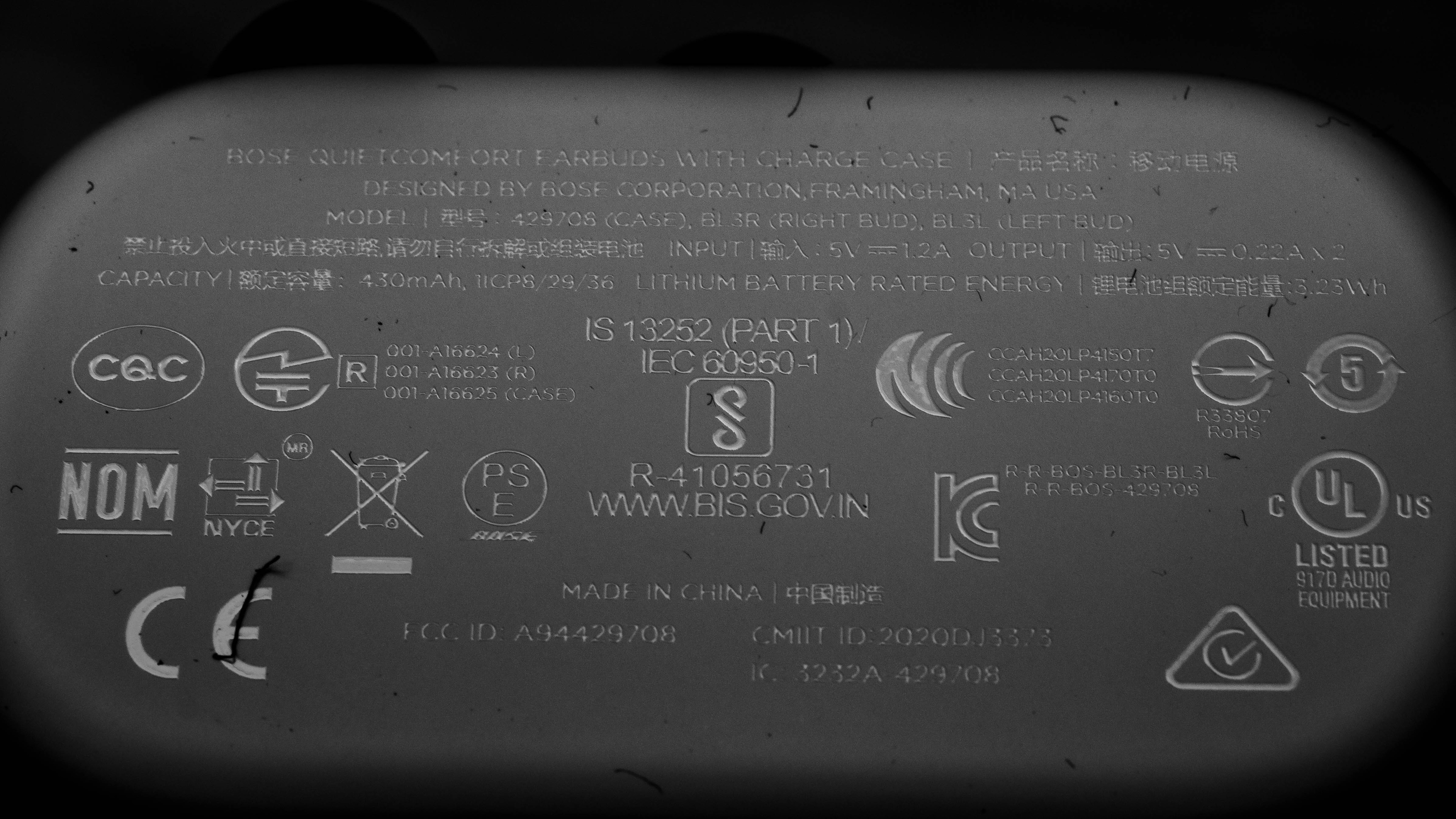 The Bose QuietComfort buds come in two main color variants: 'Triple Black', and 'Soapstone'. There are also two limited edition colors available: 'Stone Blue', and 'Sandstone'. We tested the 'Soapstone' variant, and you can see our model's label here. We expect all color variants to perform similarly to our model.