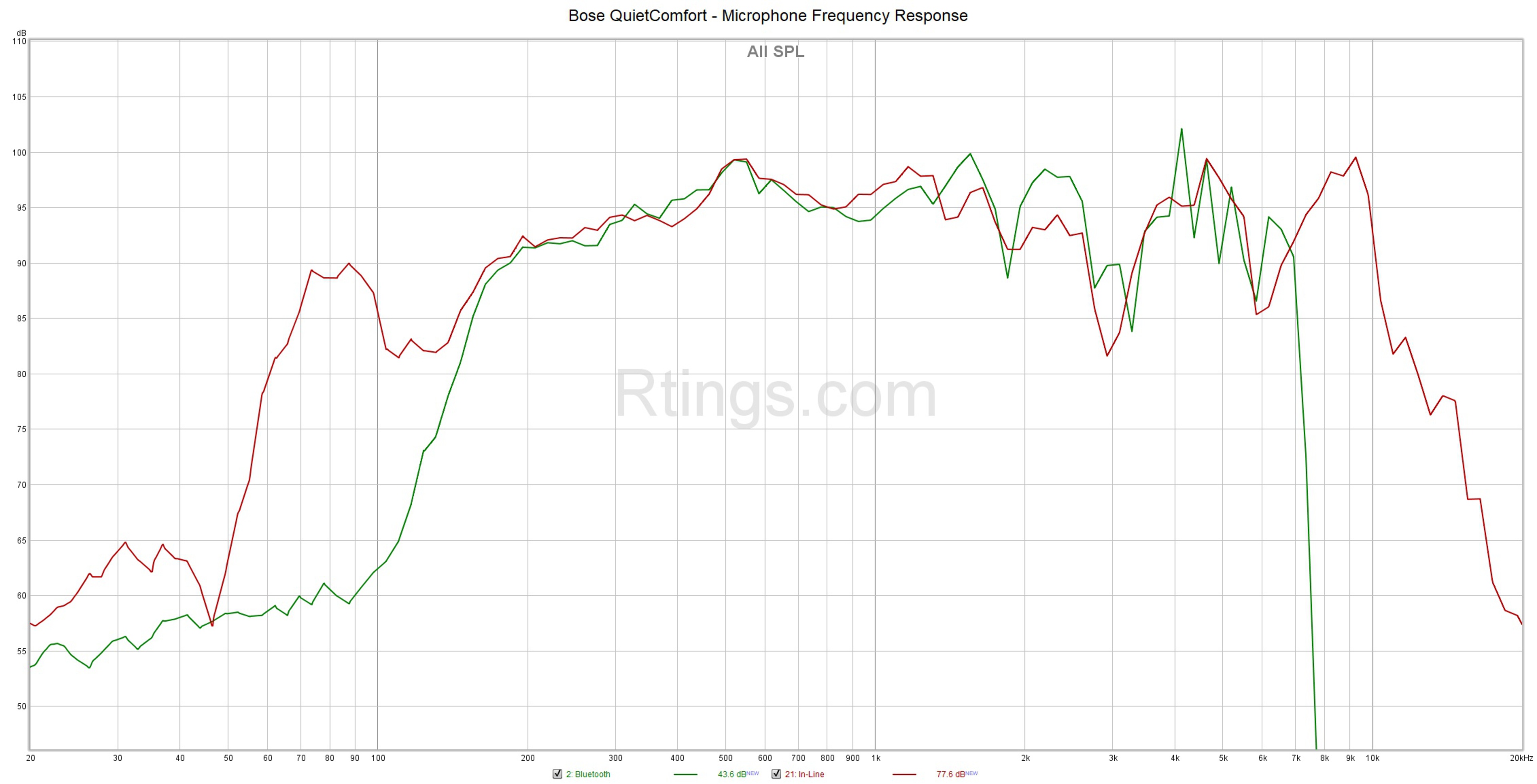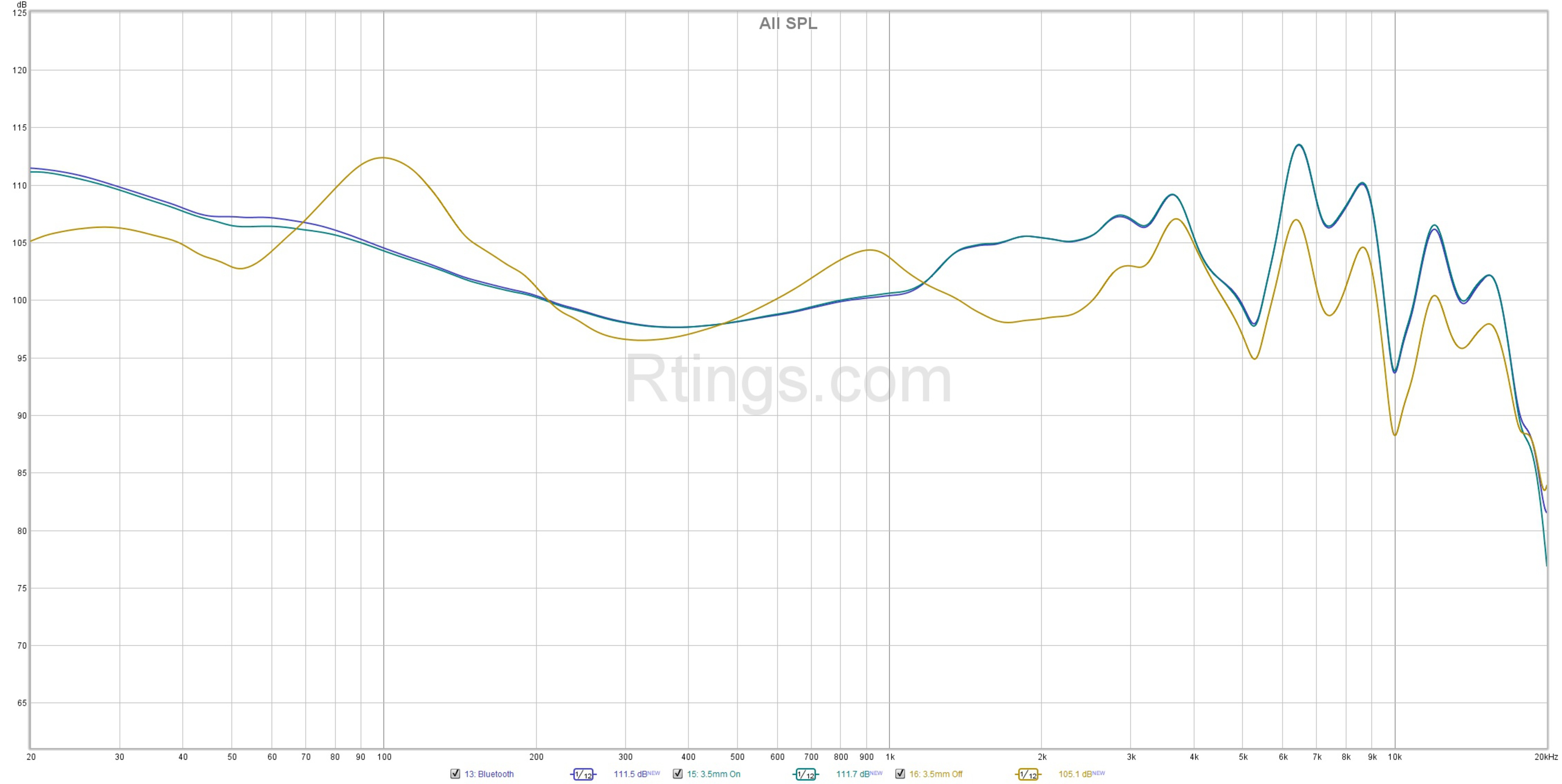 Although we measured their sound performance using Bluetooth, you can expect the same performance via analog, so long as the headphones are powered on. You can see a graph comparing the frequency responses over Bluetooth and active as well as passive wired connections. However, when used passively, the headphones deliver a very different sound with anemic low bass, considerably more boom, a boosted mid-range, and harsh treble. Vocals and instruments take a hit, sounding hollow and veiled or piercing, depending on the pitch.