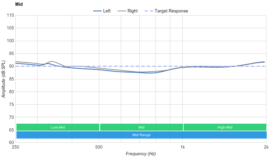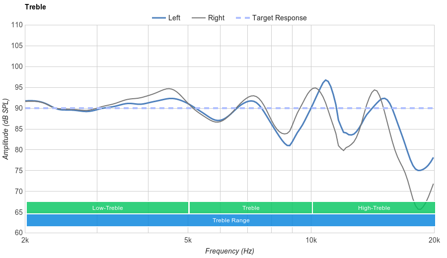 The treble accuracy of the Bose SoundSport Wireless is great. Low-treble is flat, neutral, and consistent. This ensures that vocals and lead instruments have a well-balanced presence and articulation. Mid-treble and high-treble, however, are a bit less consistent, which could make the sibilances (S and T sounds) a bit uneven.