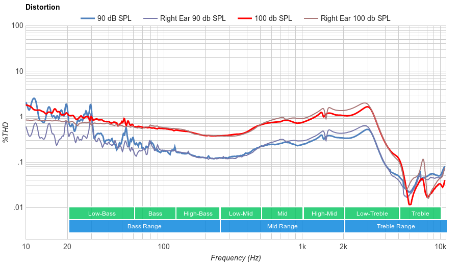 The leakage performance is excellent. The significant portion of their leakage is concentrated in a narrow band in the treble range. This means their leakage will sound quite thin and mostly consist of sibilances (S and Ts). The overall level of leakage is very low too. With the music at 100dB SPL, the leakage at 1 foot away averages at 23dB and peaks at 40dB, which is quite a bit lower than the noise floor of most offices.