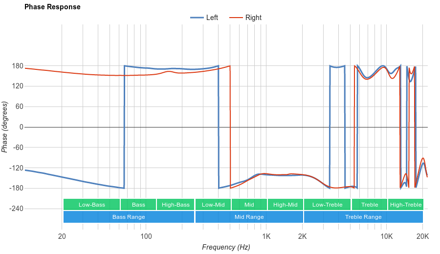 The SoundTrue Ultra have excellent imaging. Their weighted group delay is at 0.09, which is very good. Also, the GD graph shows that the group delay response never crosses the audibility threshold. This suggests that they have a tight bass and a transparent treble reproduction. Additionally, the L/R drivers of our test unit were exceptionally well-matched in amplitude, frequency, and phase response, which ensures a accurate placement and localization of objects (voices, instruments, video game effects) in the stereo image.
