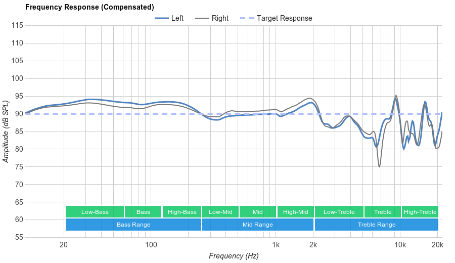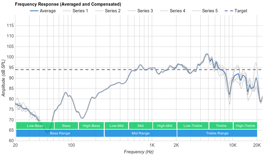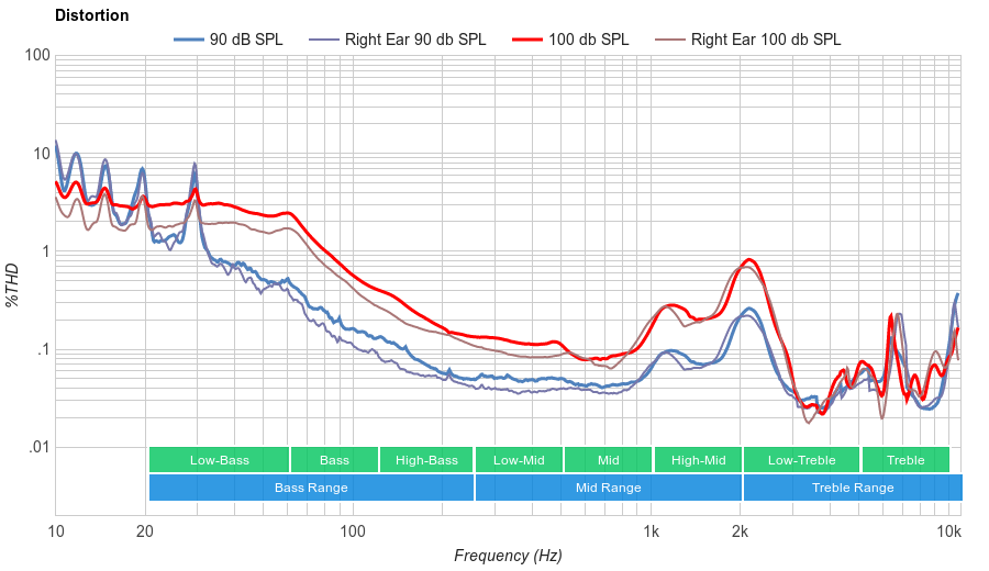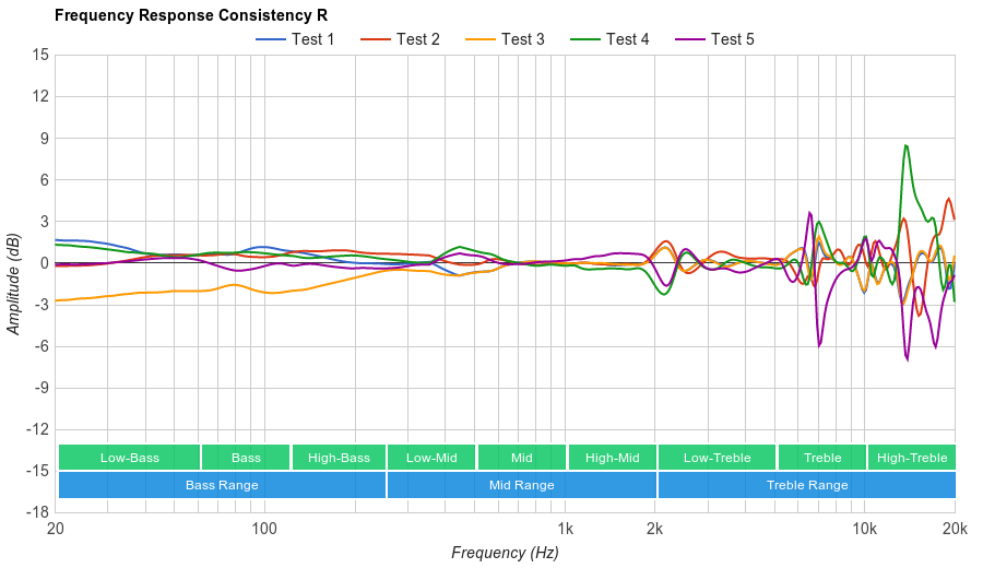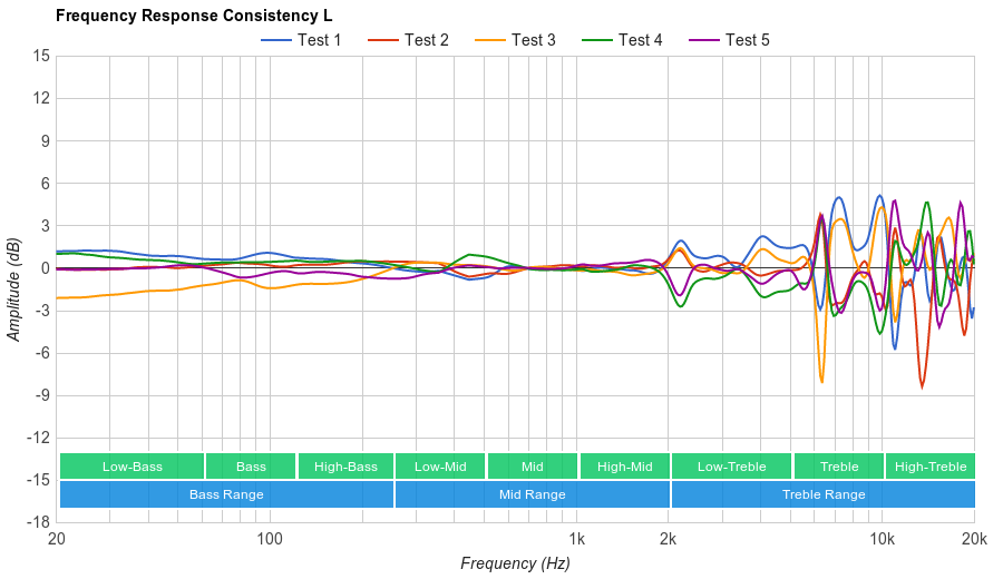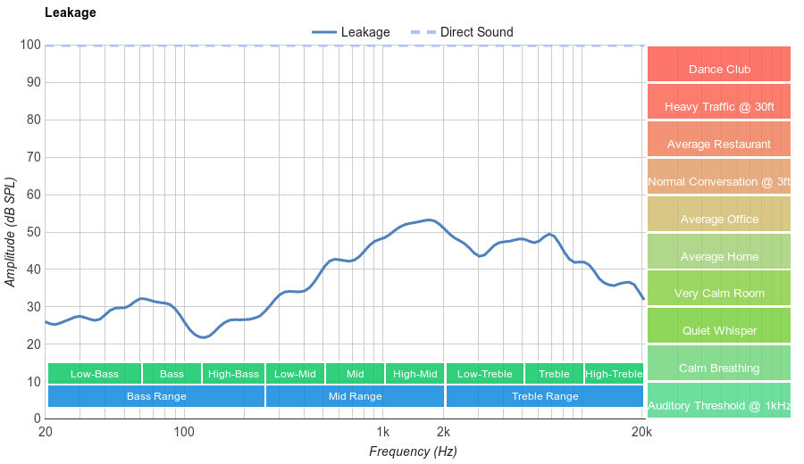 Poor leakage performance. The majority of leakage sits between the 400Hz-9KHz frequency range which is broad. The overall level of the leakage also relatively loud, which contributes to the poor leakage score of these headphones.