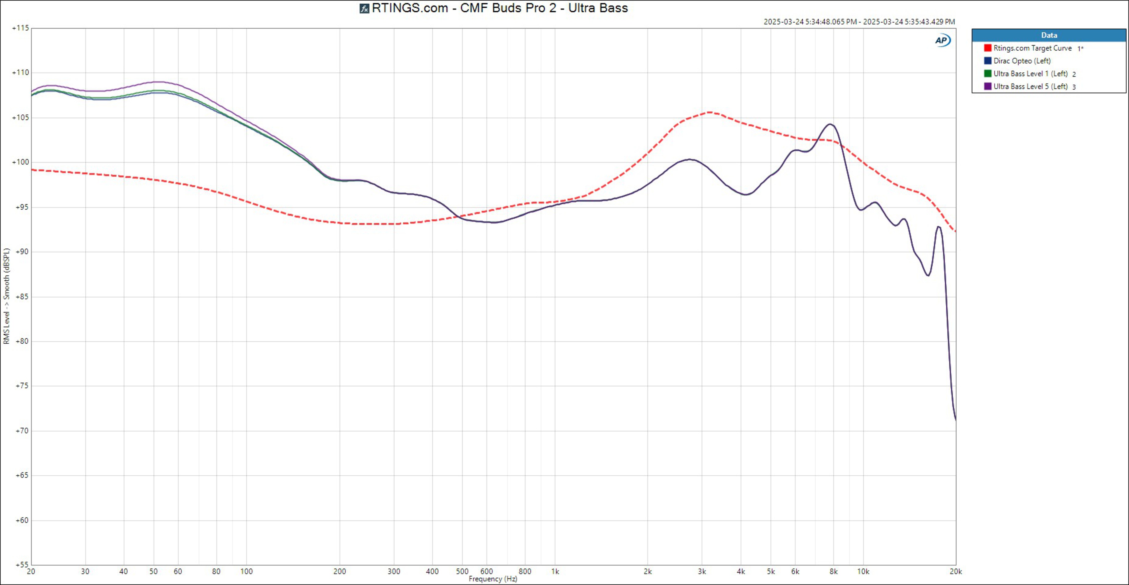 Through the app, you can access other EQ presets. If you choose to connect via the LDAC codec, it disables the Dirac Opteo setting. In addition to the EQ presets, you can enable the Ultra Bass setting, which does what it says on the tin by upping the bass in the frequency response. While the sound profile mostly adheres to the same curve, there's a bit less bass and treble and a little more mid-range when you disable ANC.