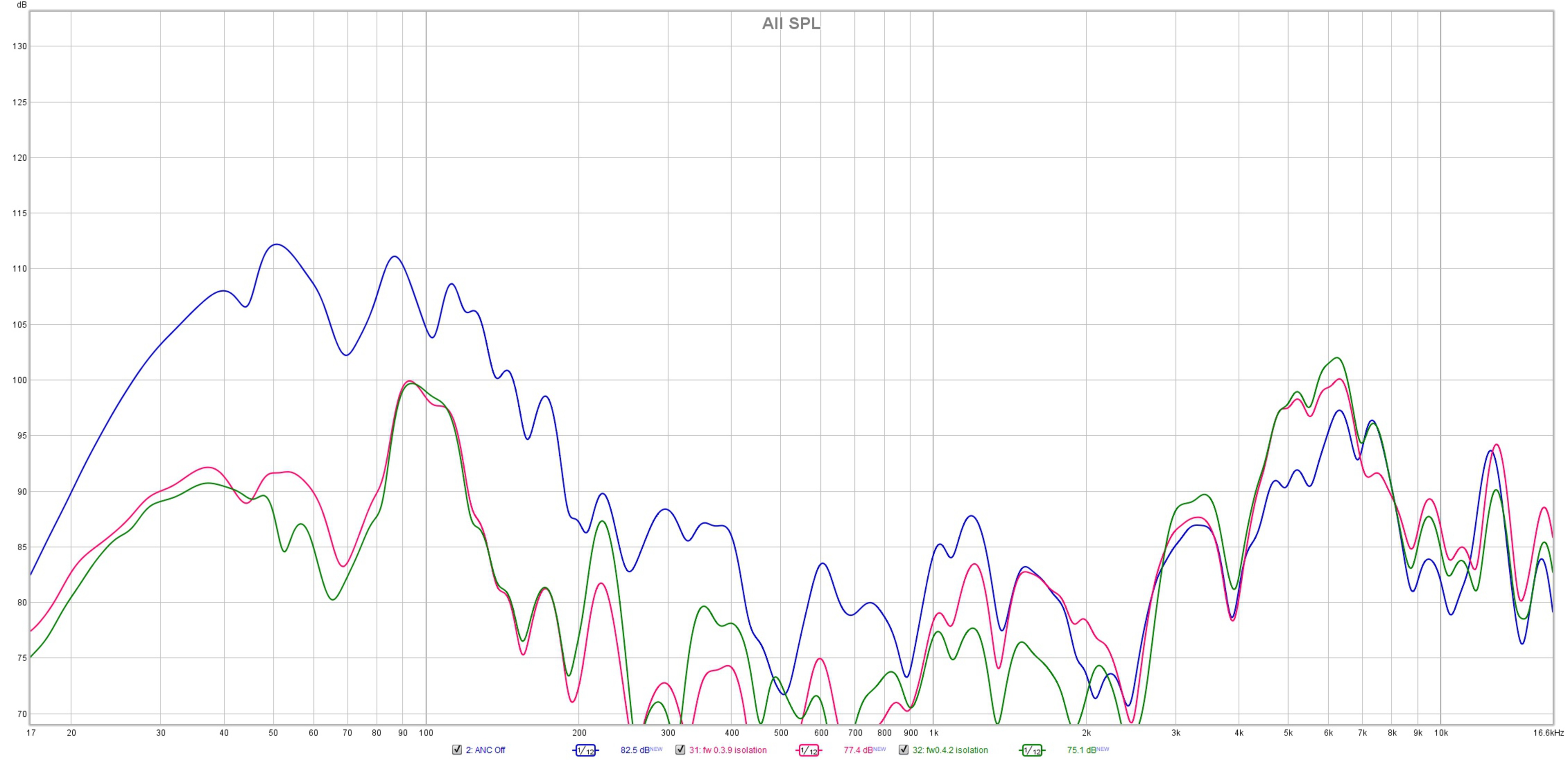 Although we measured a difference in noise isolation between our original testing and firmware 0.4.2 as you can see here, we did not encounter a difference using firmware 0.5.1.