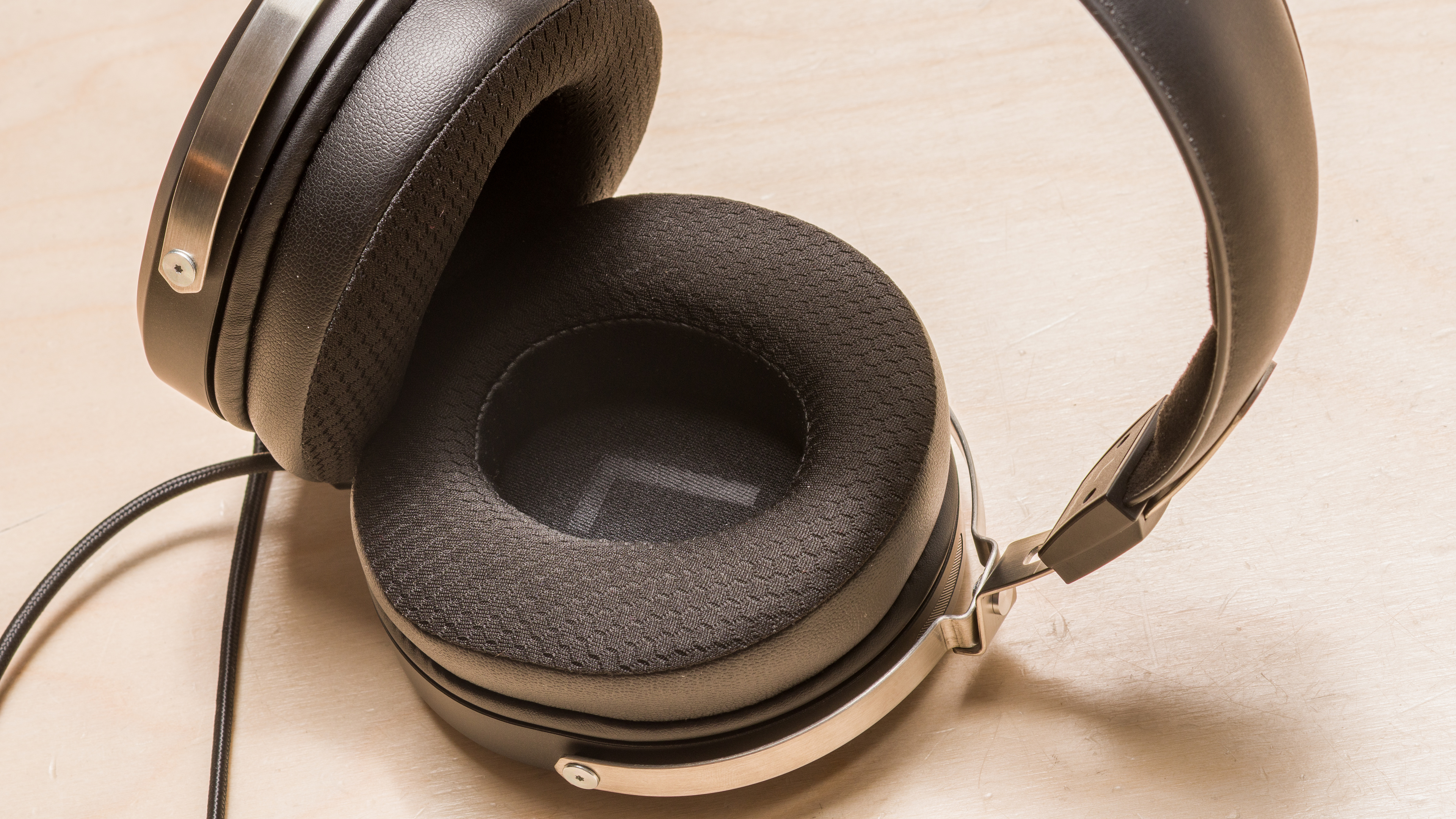 These are very comfortable headphones. The earpads are plush, made from faux leather, as well as a perforated cloth outer rim that helps keep temperatures down. The padding is also angled somewhat to fit the curve of your head, with extra thickness at the back, behind your ear. The ear cups are so deep and well-padded that it can be a challenge to fit the arms of glasses in there, though. The cable is also on the heavier side, which can act as a dropped anchor. It's often more comfortable to rest the cable on a desk or surface to avoid this.